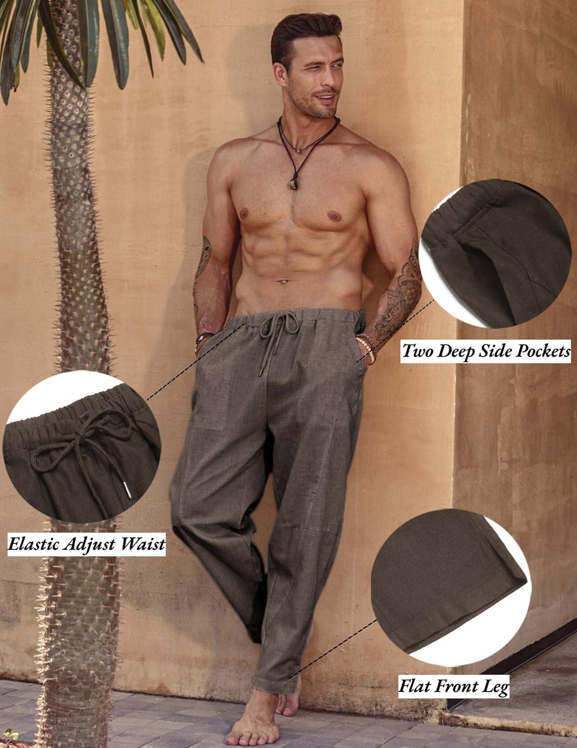 imageCOOFANDY Mens Linen Harem Drawstring Pants Casual Elastic Waist Lightweight Trouser Hippie Summer Beach Yoga PantsCoffee