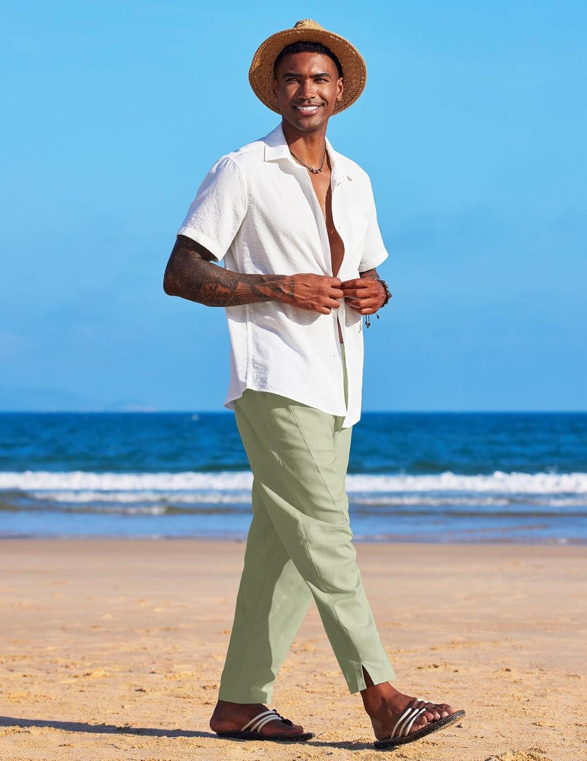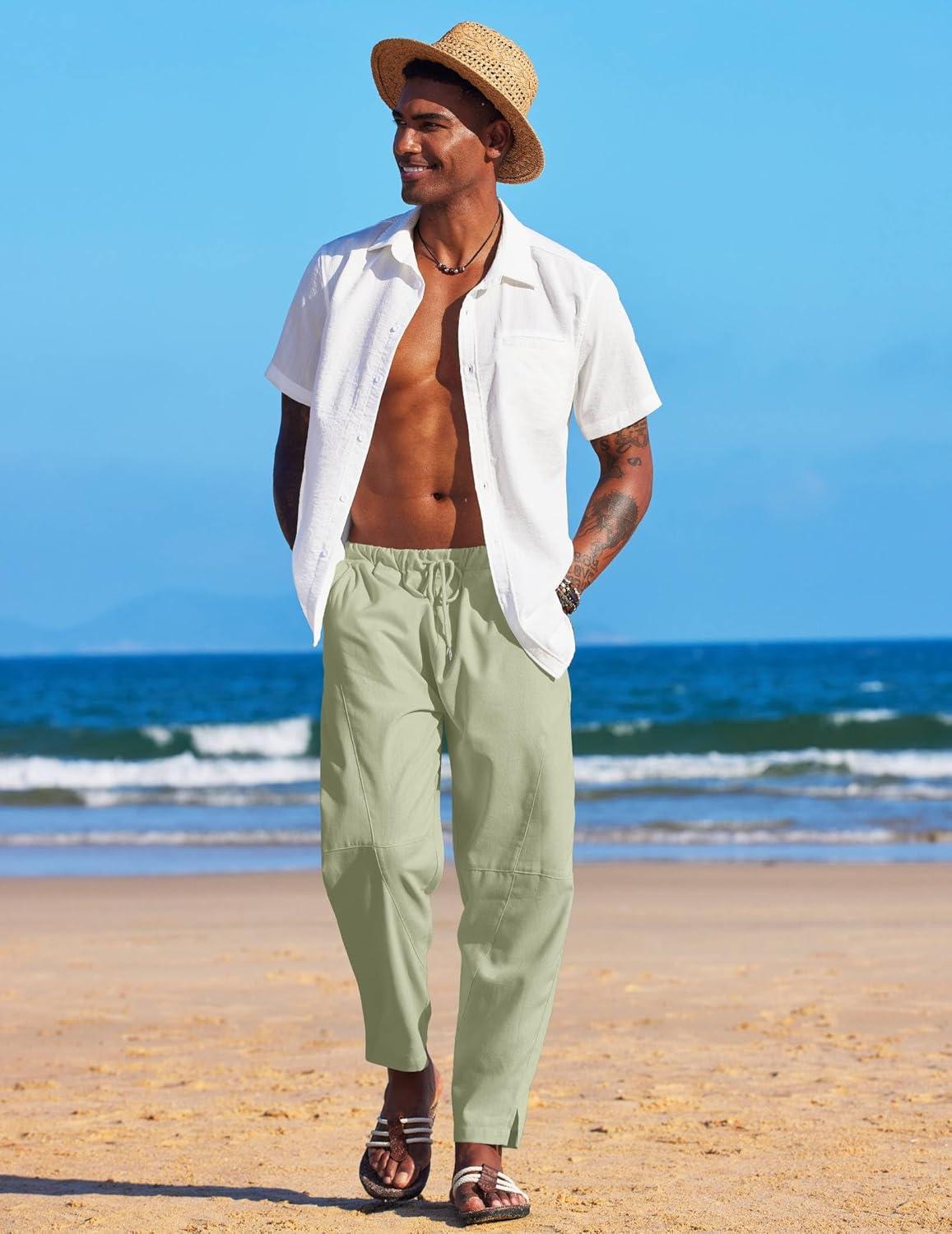 COOFANDY Men’s Linen Harem Drawstring Pants Casual Elastic Waist Lightweight Trouser Hippie Summer Beach Yoga Pants(Light Green)