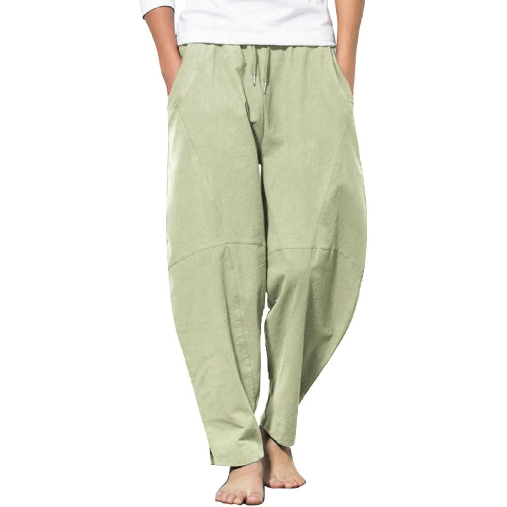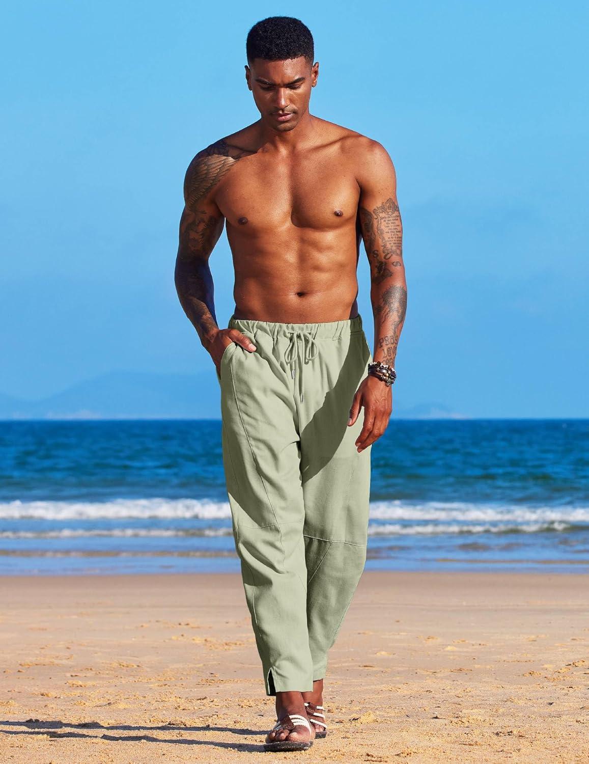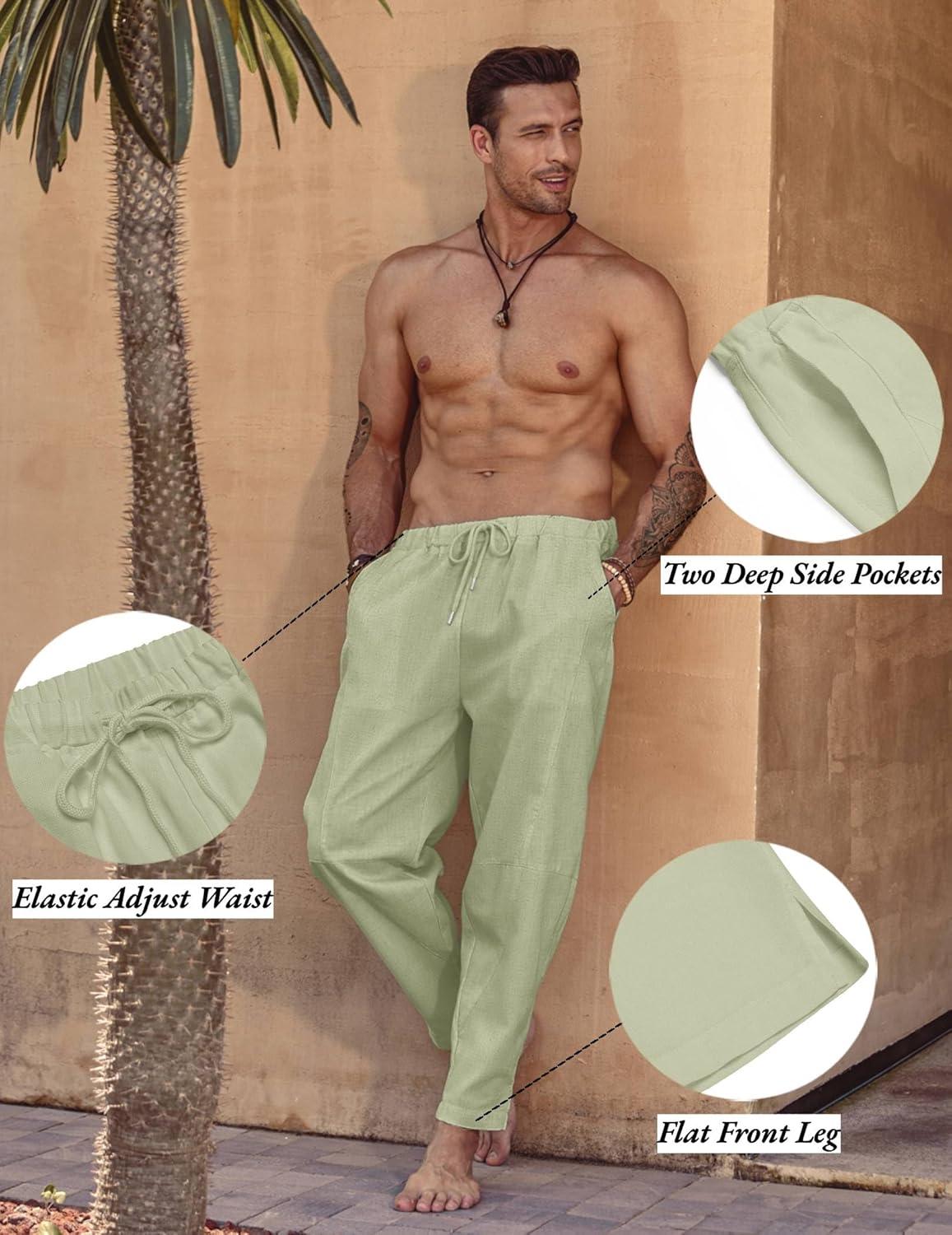 COOFANDY Men's Linen Harem Drawstring Pants Casual Elastic Waist Lightweight Trouser Hippie Summer Beach Yoga Pants(Light Green)