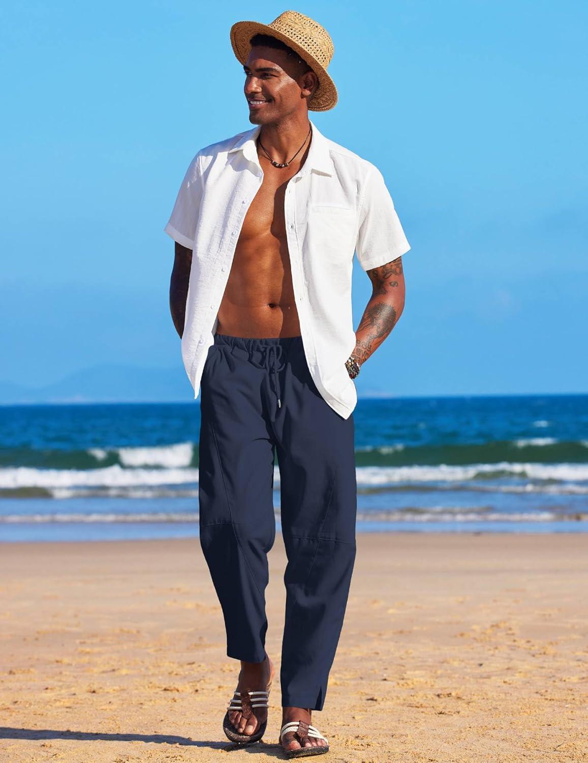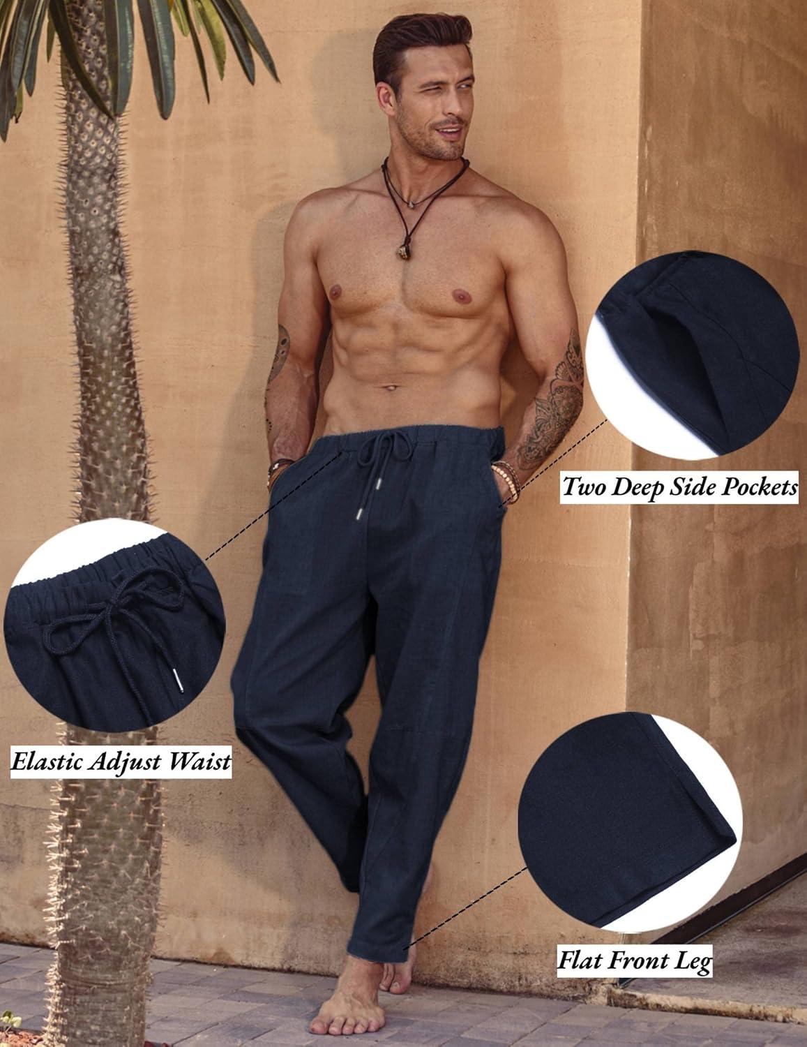 Don’t miss out on our limited-time offer: buy COOFANDY Men’s Linen Harem Drawstring Pants Casual Elastic Waist Lightweight Trouser Hippie Summer Beach Yoga Pants(Navy Blue), get a free {accessory}!