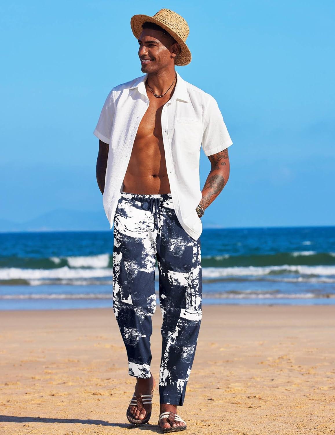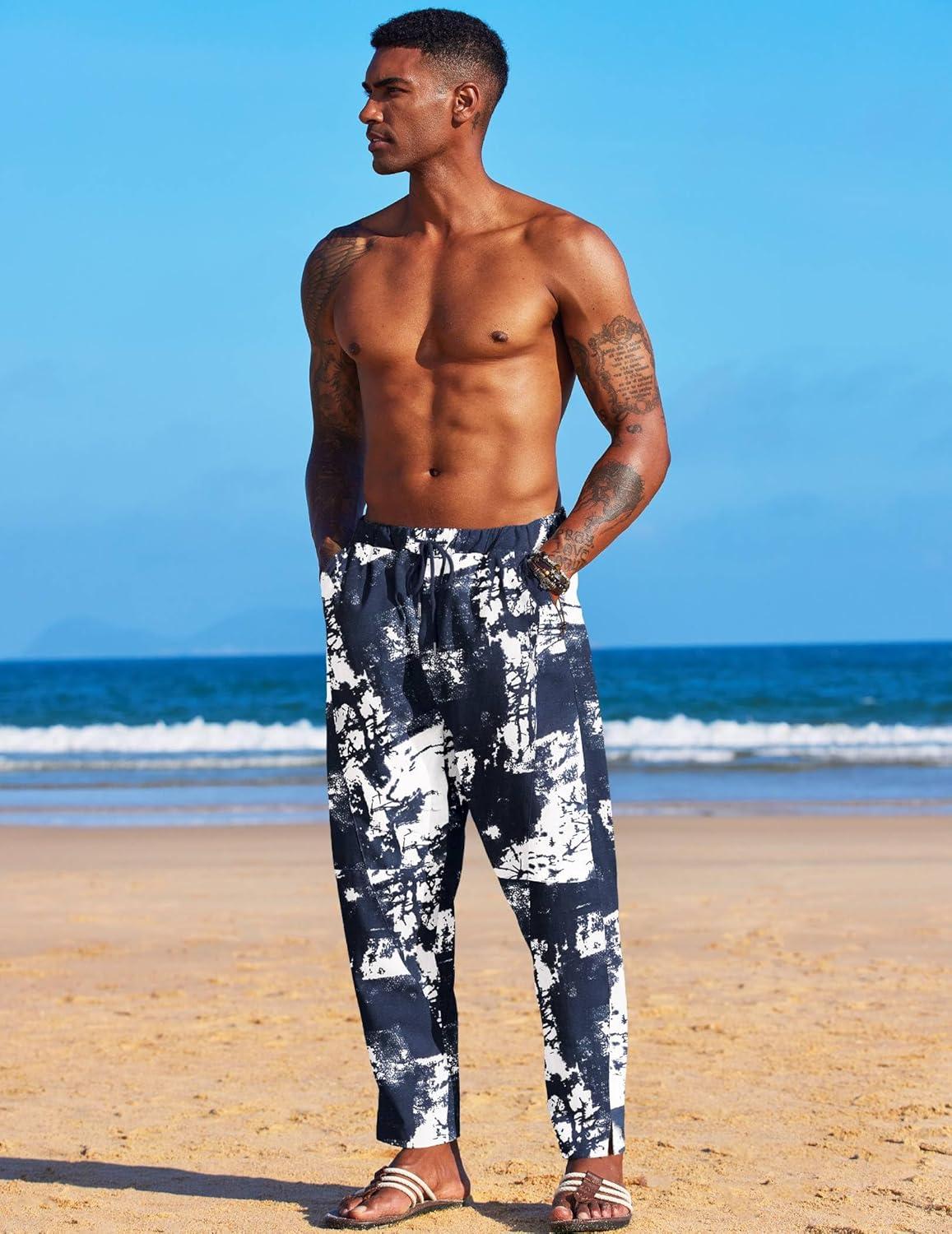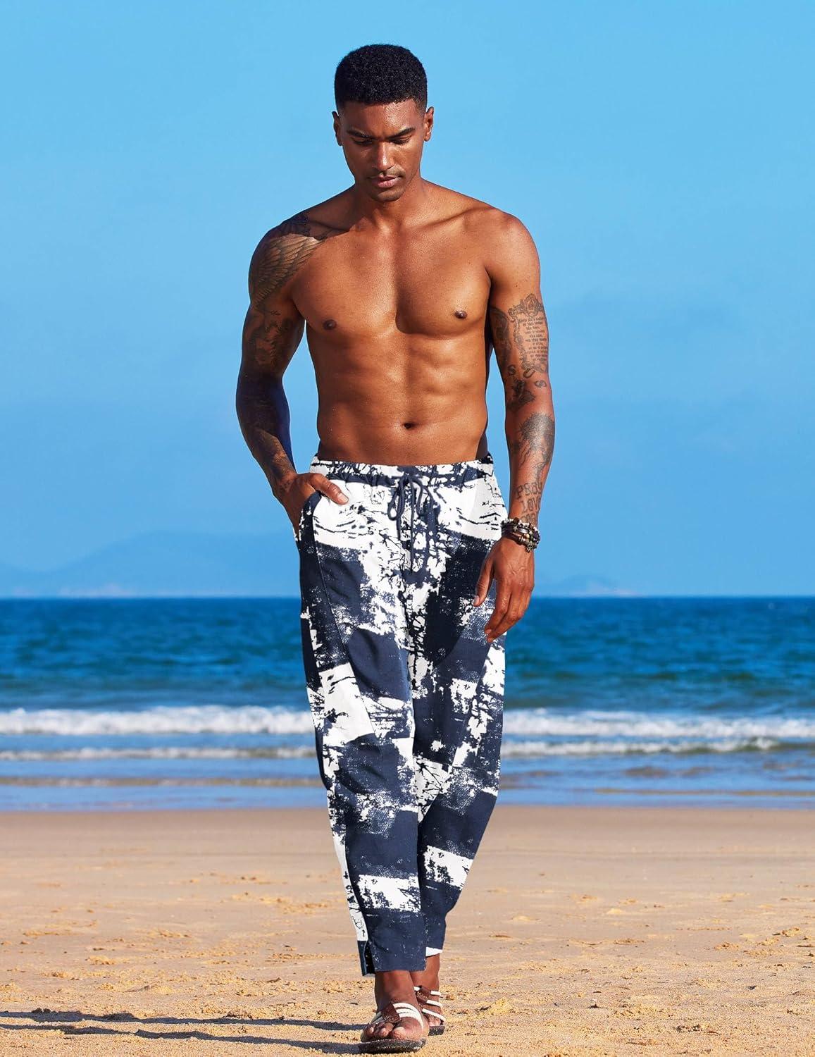 COOFANDY Men's Linen Harem Drawstring Pants Casual Elastic Waist Lightweight Trouser Hippie Summer Beach Yoga Pants(Pat3)