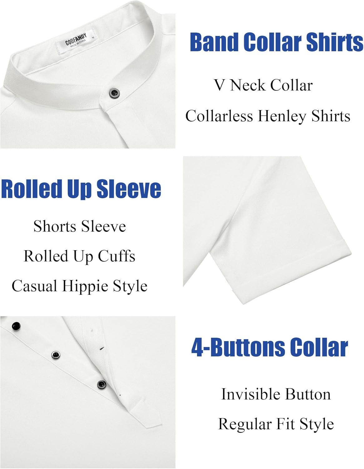 COOFANDY Men's Linen Henley Shirt Short Sleeve Casual Summer Beach Hippie T Shirts(1-white)