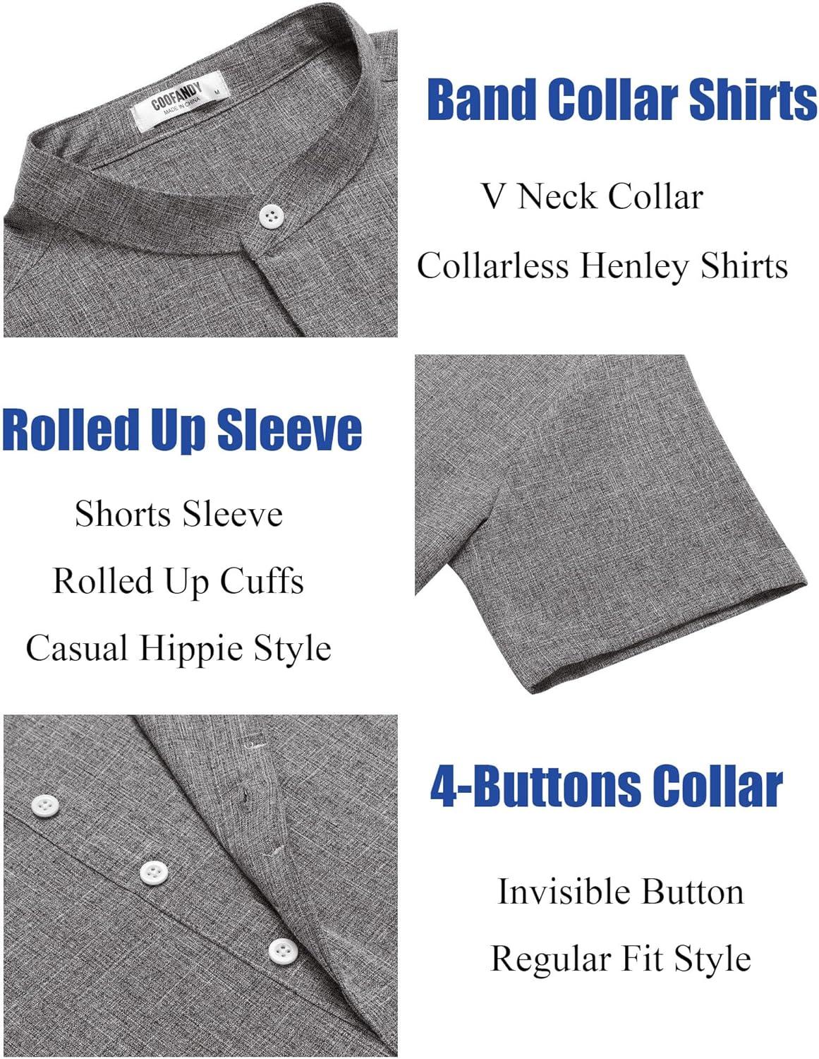 COOFANDY Men's Linen Henley Shirt Short Sleeve Casual Summer Beach Hippie T Shirts(Dark Grey)