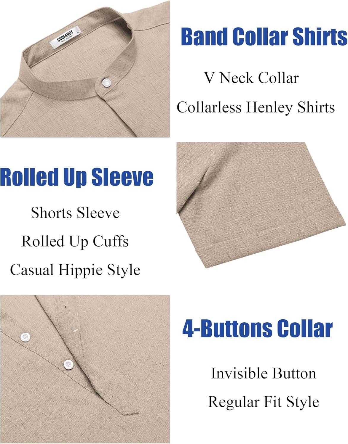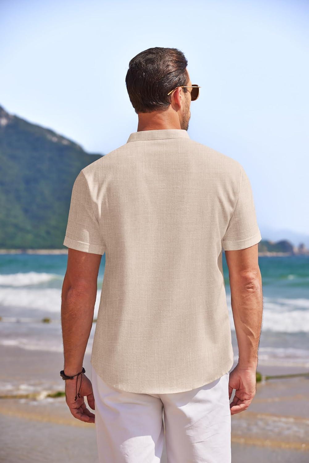 COOFANDY Men's Linen Henley Shirt Short Sleeve Casual Summer Beach Hippie T Shirts(Khaki)