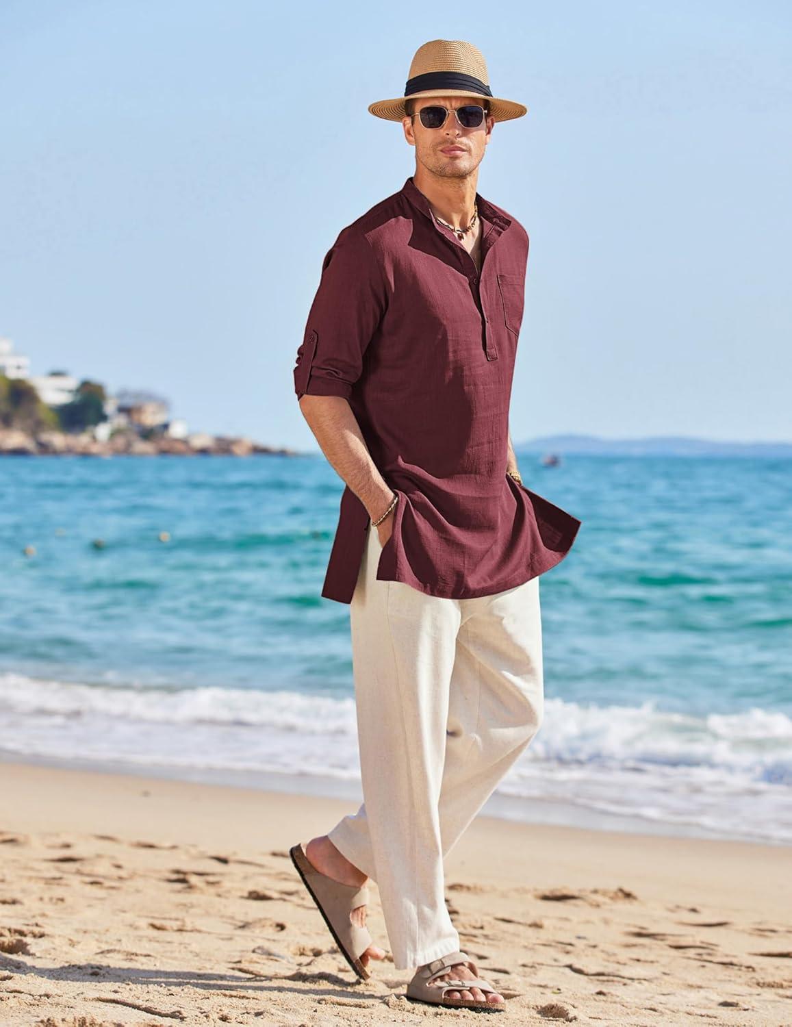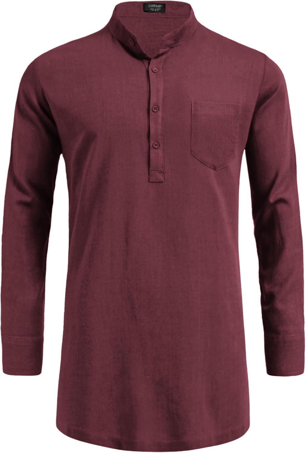 Save big on COOFANDY Men’s Linen Henley Shirts Long Sleeve Collarless T-Shirts Longline Kurta Beach Shirts with Pocket(Wine Red) and accessories during our BOGO sale. Buy one, get one 50% off!