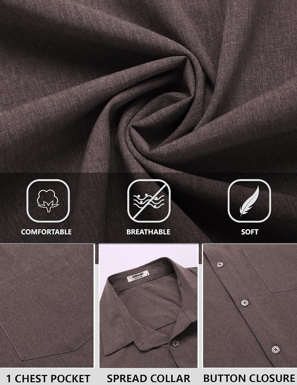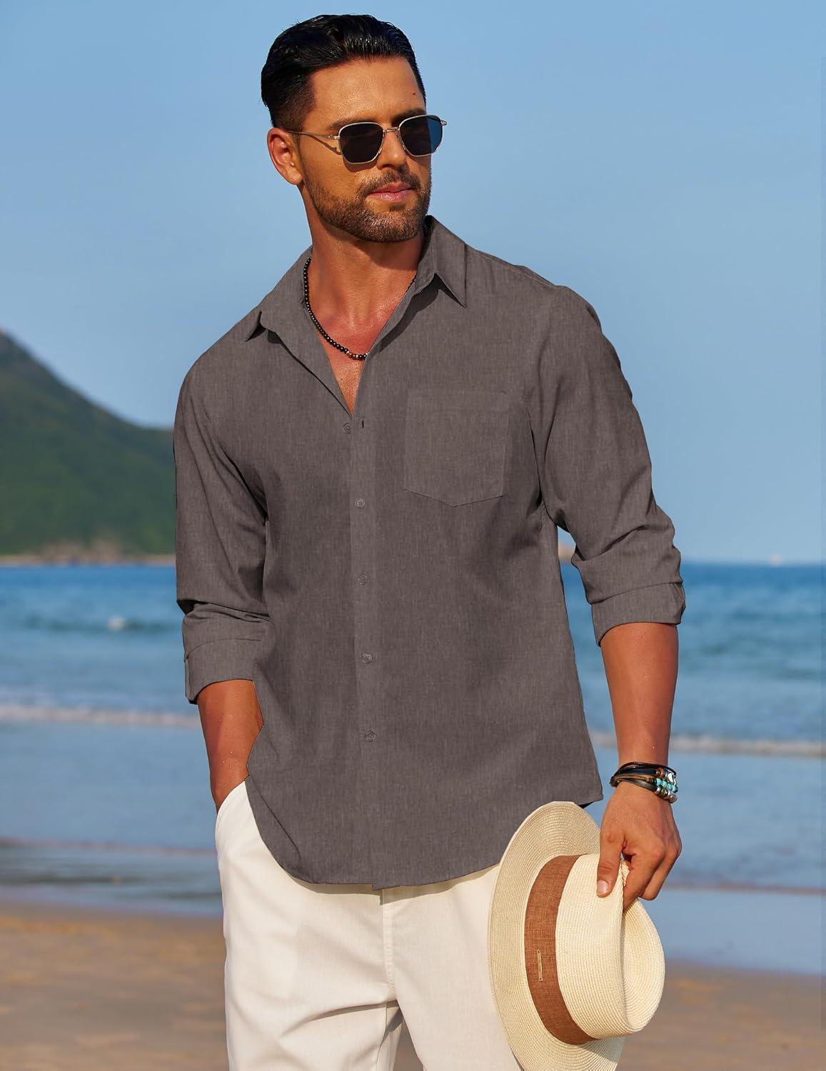 COOFANDY Men’s Linen Long Sleeve Shirts Casual Button Down Untucked Shirt Vacation Wedding Shirts with Pocket(Brown)