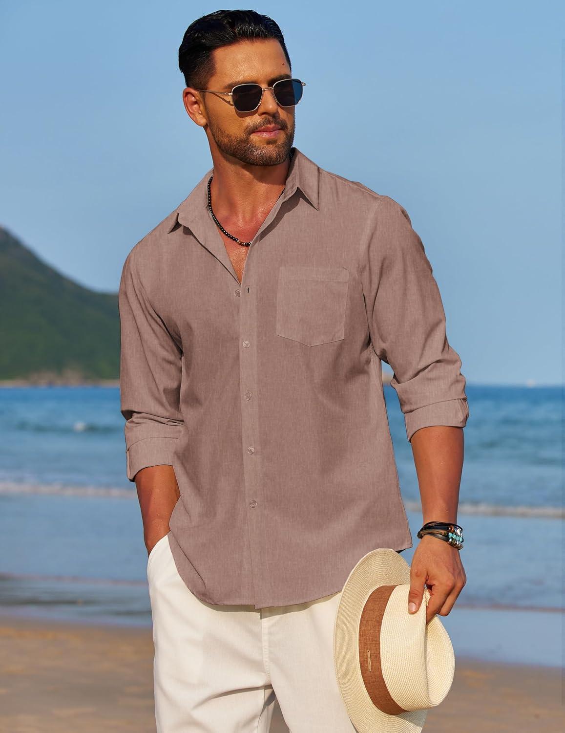 COOFANDY Men’s Linen Long Sleeve Shirts Casual Button Down Untucked Shirt Vacation Wedding Shirts with Pocket(Light Green)