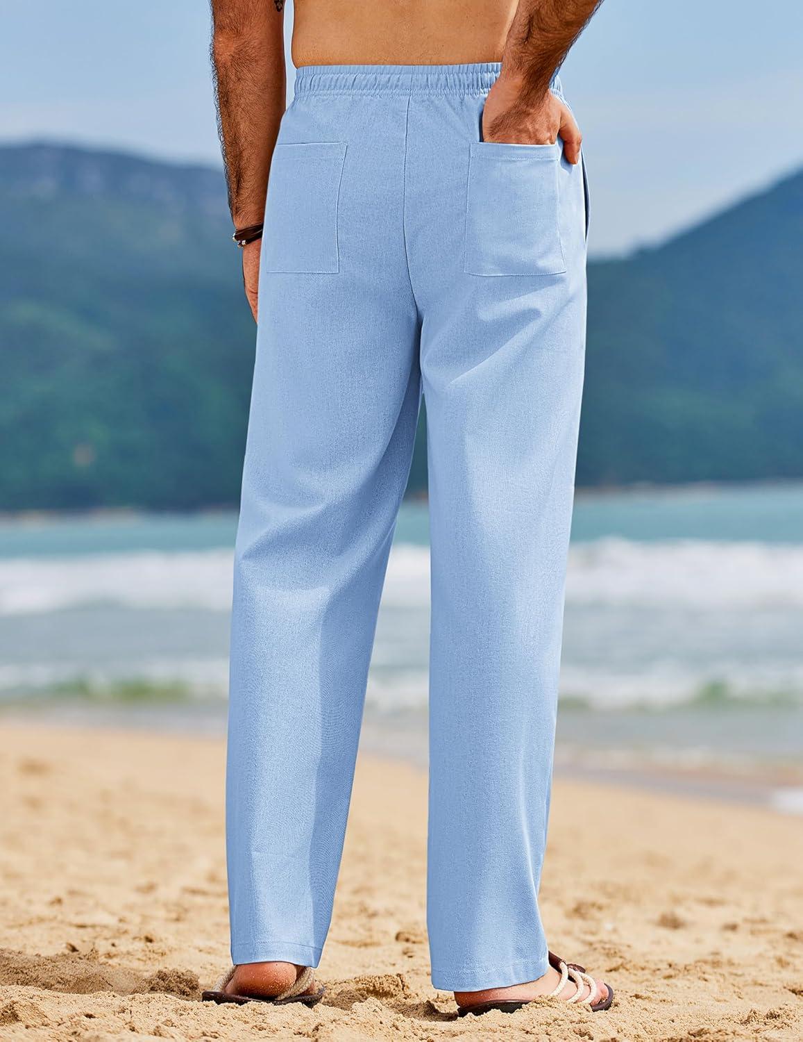 COOFANDY Men's Linen Pants Drawstring Casual Loose Fit Beach Summer Pants Lightweight Linen Trousers Yoga Pants(Clear Blue)