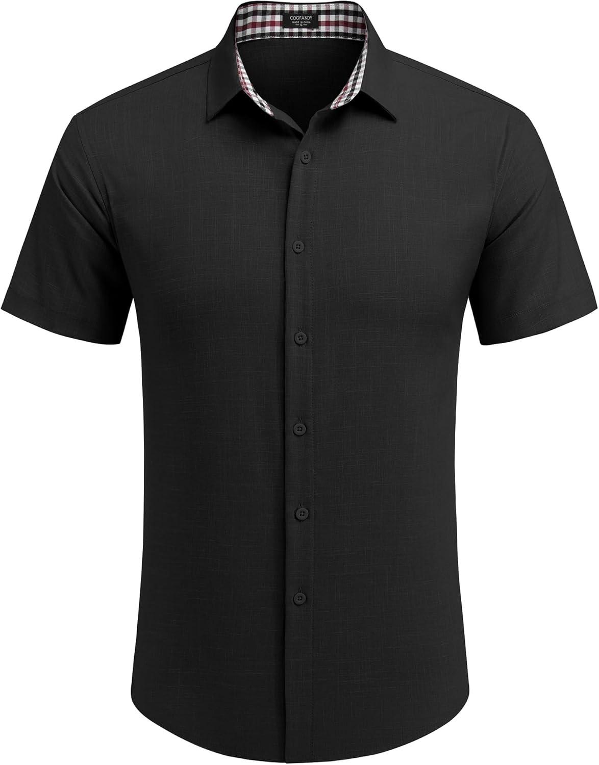 COOFANDY Men Summer Beach Shirts Short Sleeve Linen Button Down Shirt Business Casual Shirt