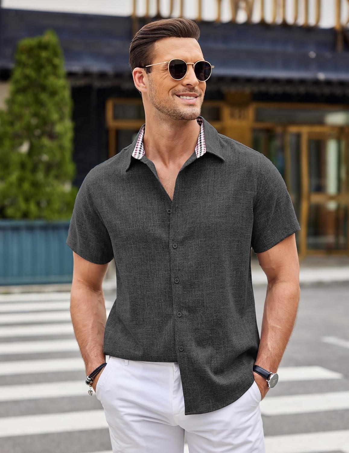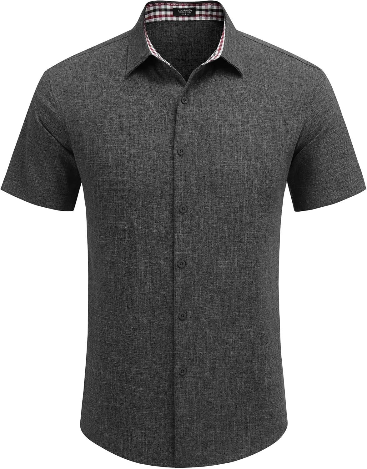 COOFANDY Men Summer Beach Shirts Short Sleeve Linen Button Down Shirt Business Casual Shirt