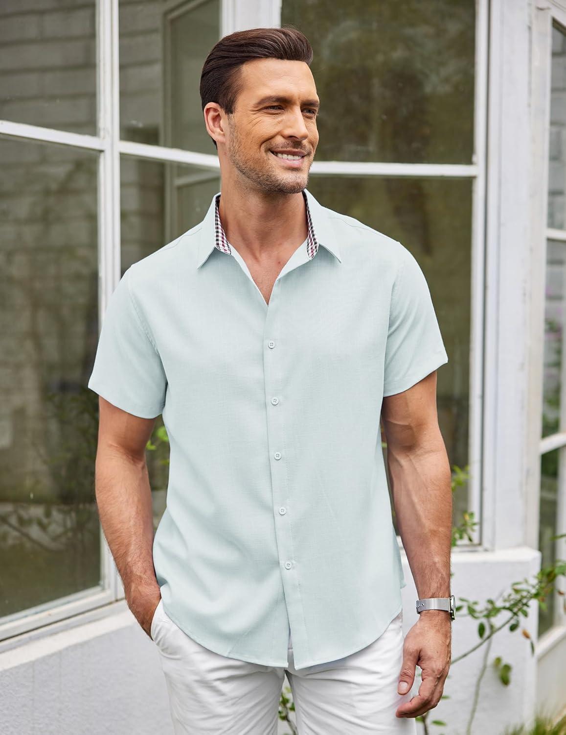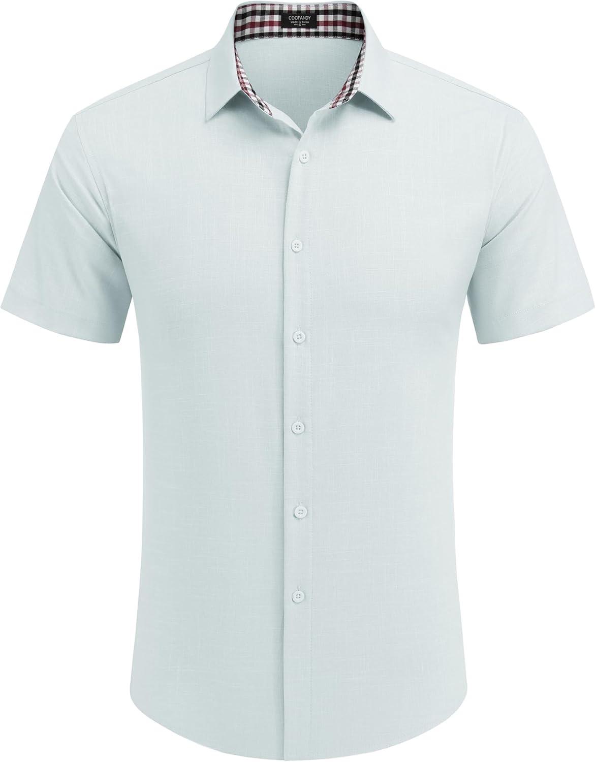 COOFANDY Men Summer Beach Shirts Short Sleeve Linen Button Down Shirt Business Casual Shirt