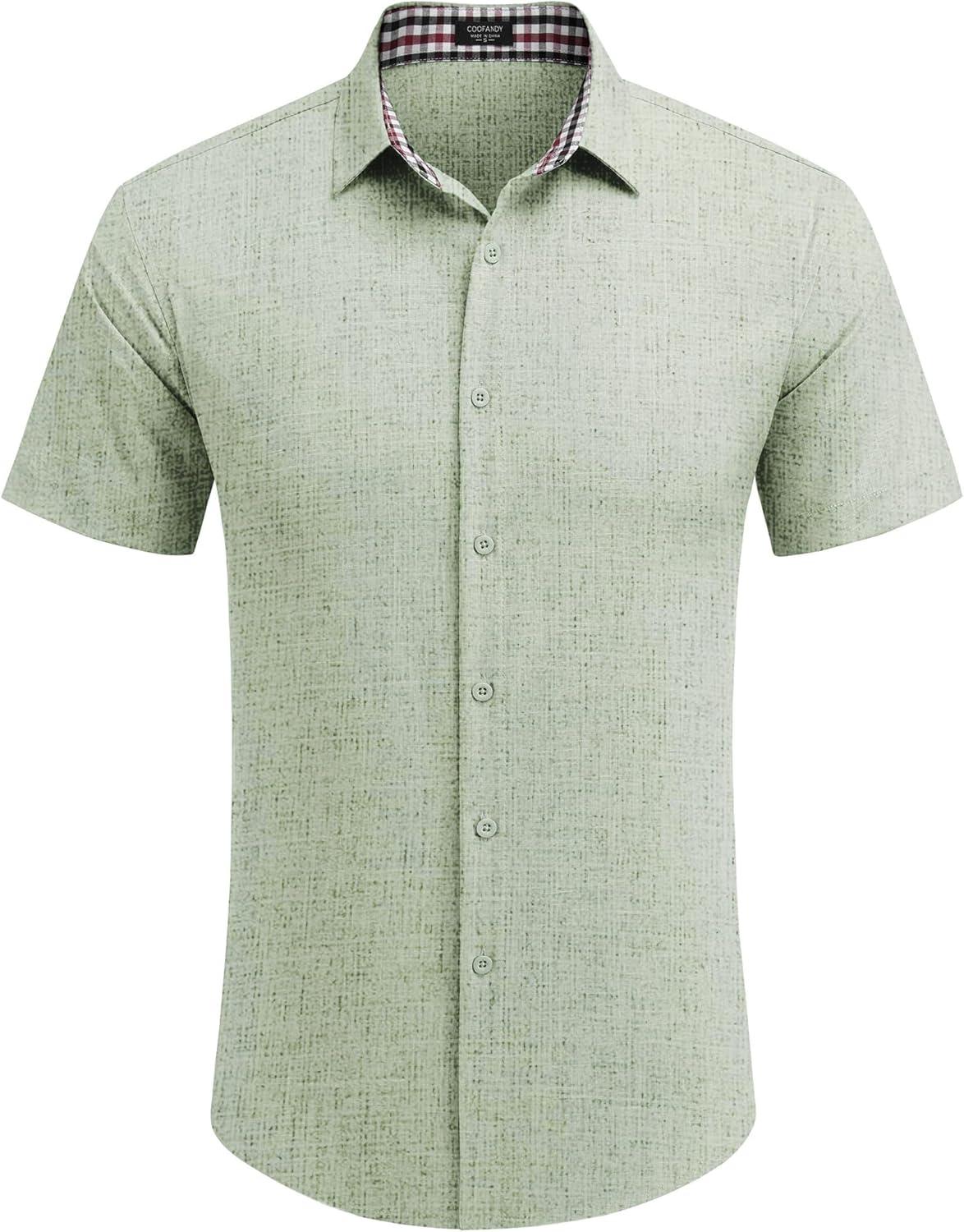 COOFANDY Men Summer Beach Shirts Short Sleeve Linen Button Down Shirt Business Casual Shirt