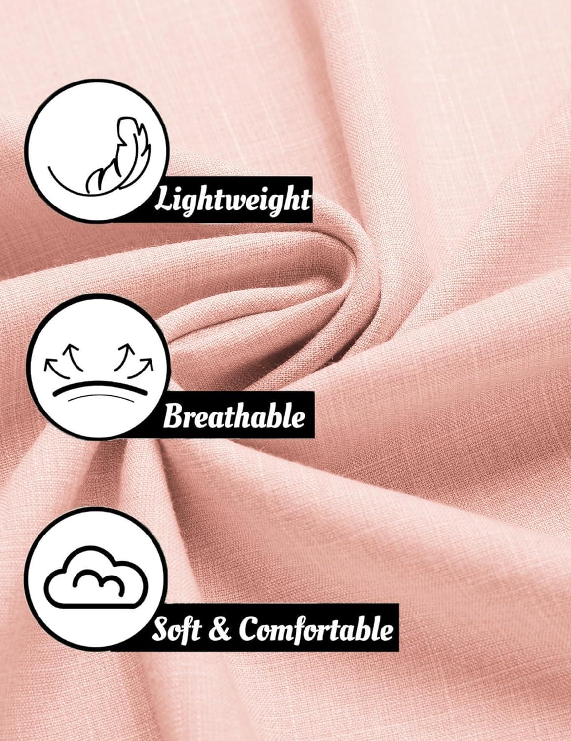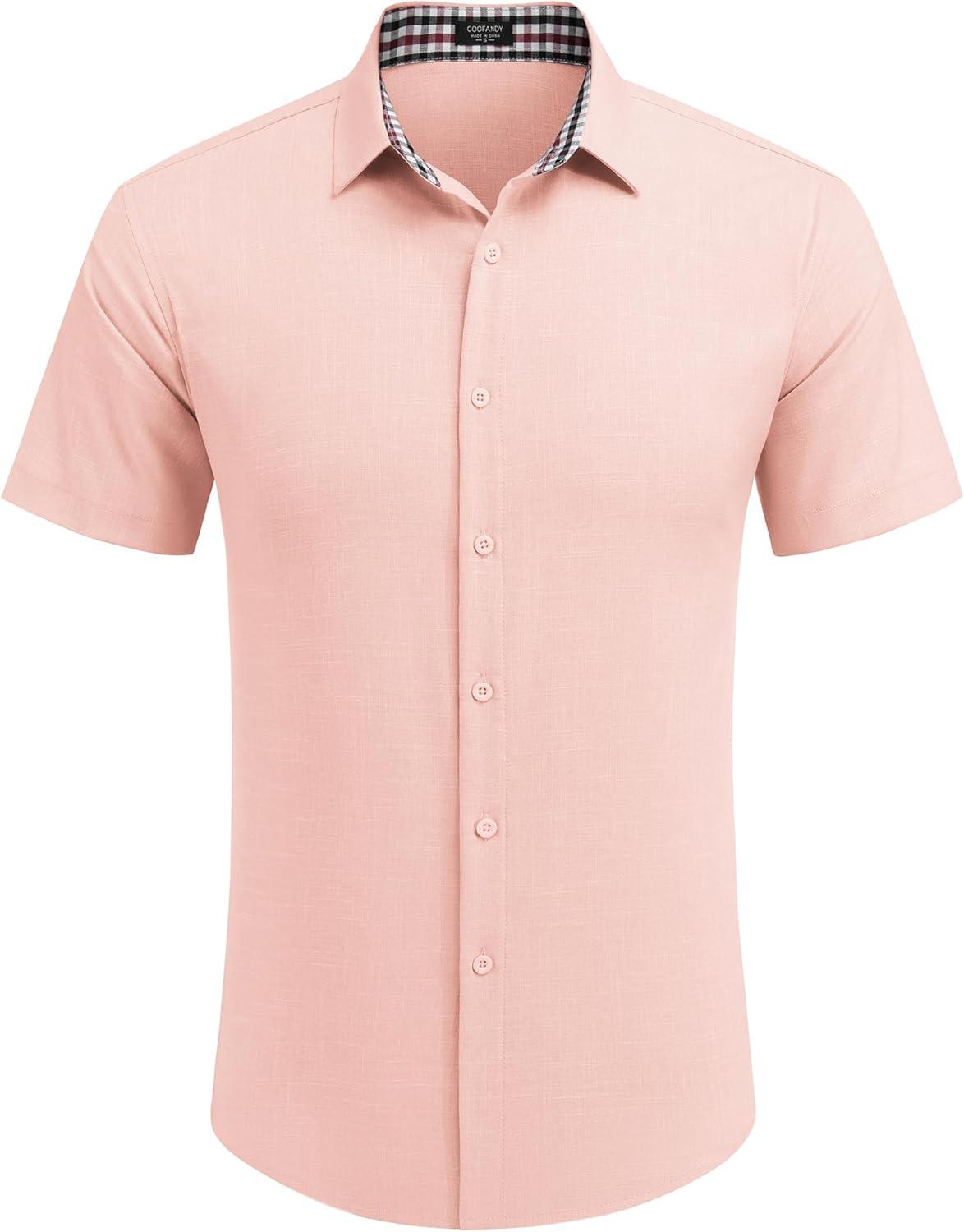 COOFANDY Mens Linen Shirt Casual Short Sleeve Button Down Shirts Summer Beach Vacation Tops(Light Pink)