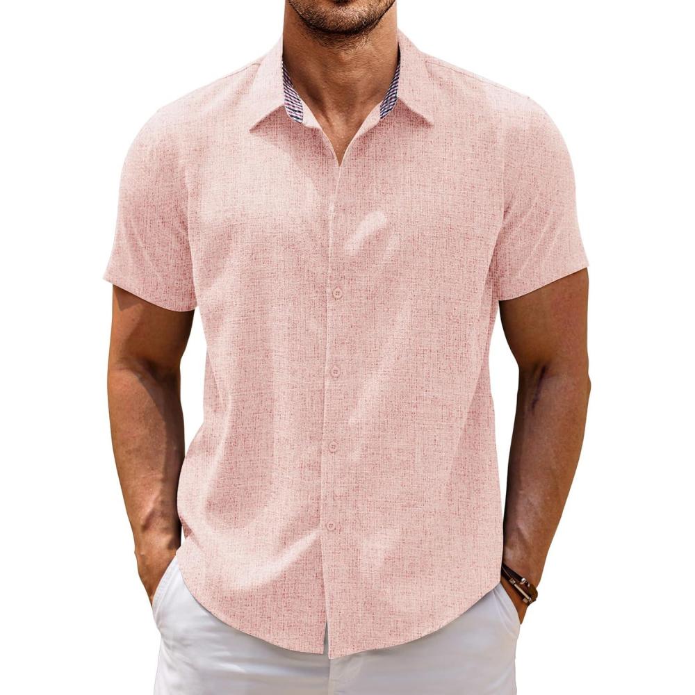 Save up to 40% on COOFANDY Mens Linen Shirt Casual Short Sleeve Button Down Shirts Summer Beach Vacation Tops(Light Pink) styles during our end-of-season sale.