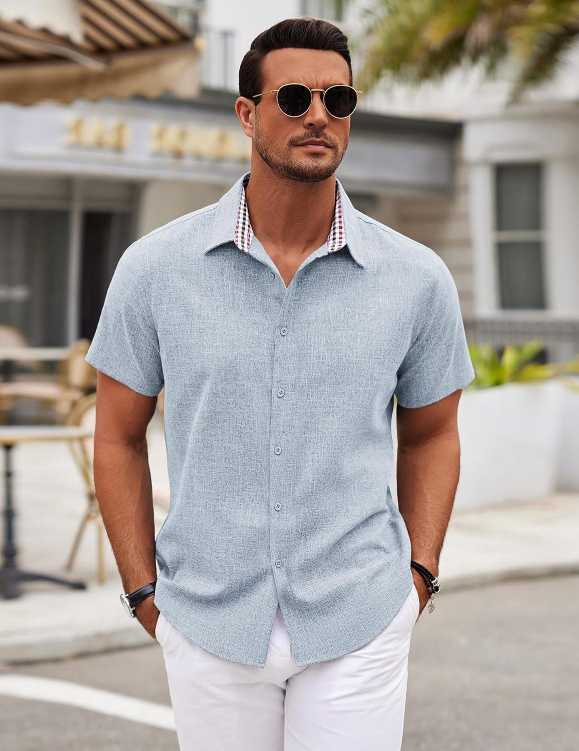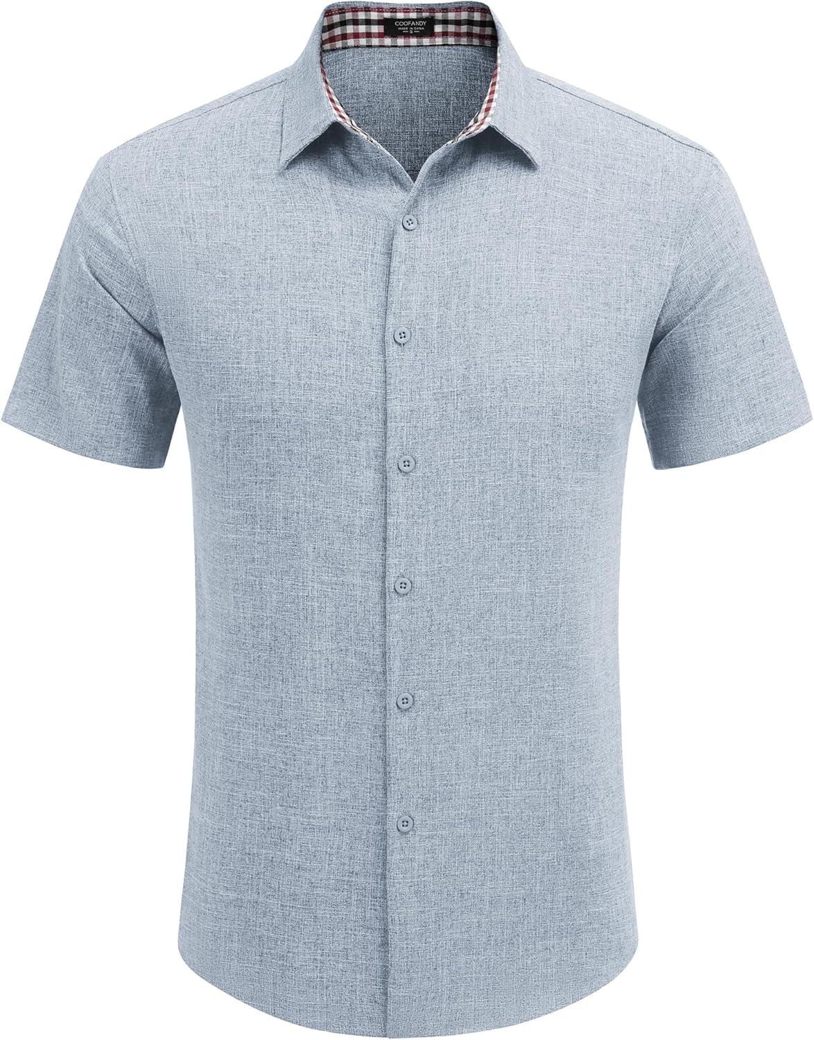 COOFANDY Men Summer Beach Shirts Short Sleeve Linen Button Down Shirt Business Casual Shirt