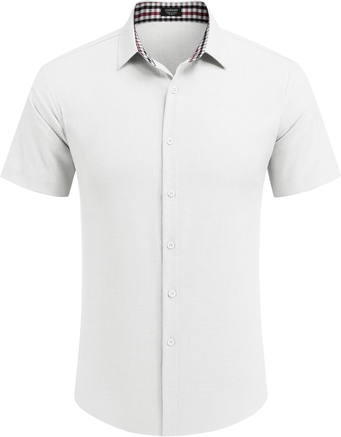 COOFANDY Men Summer Beach Shirts Short Sleeve Linen Button Down Shirt Business Casual Shirt
