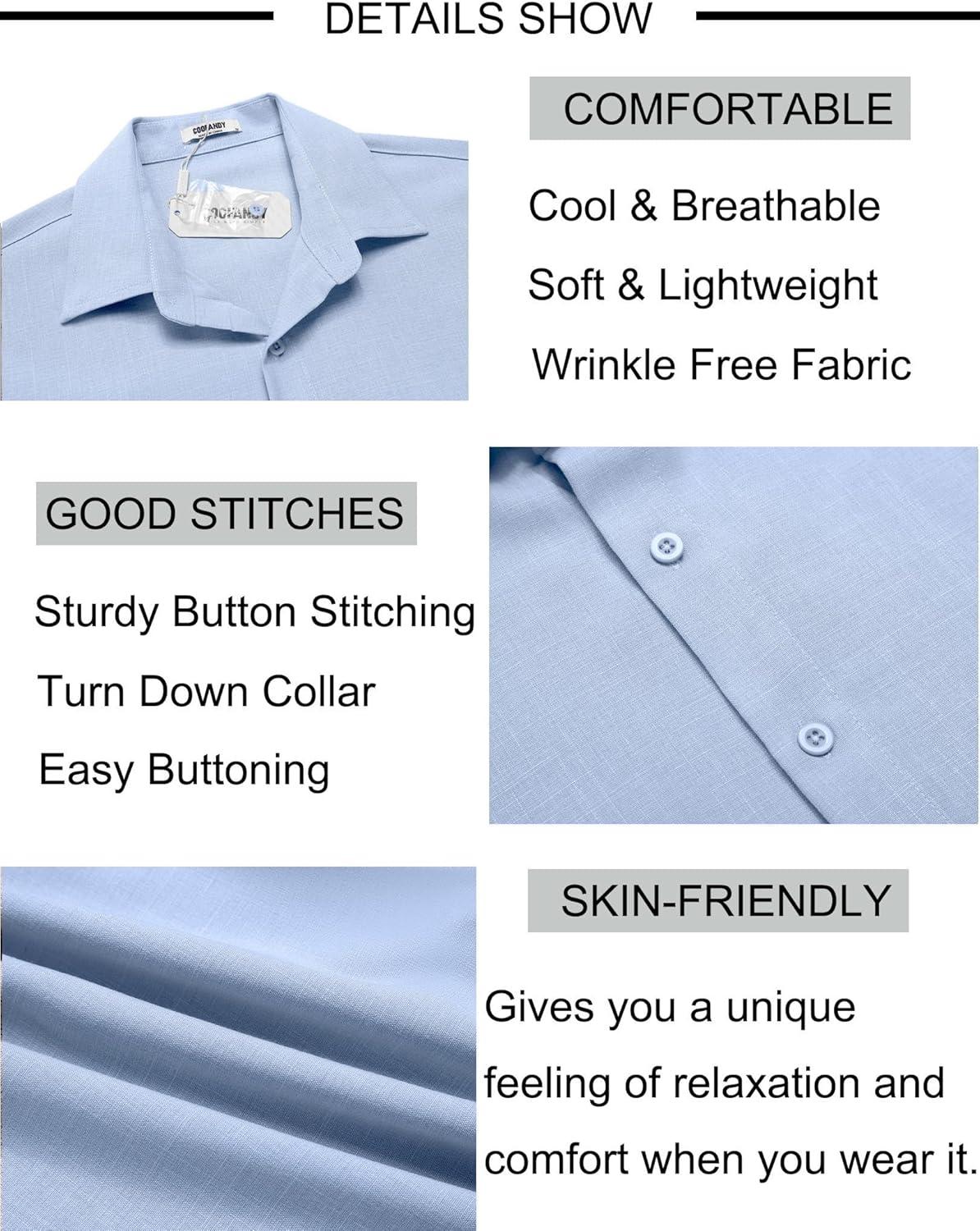Be the first to review “COOFANDY Men’s Linen Shirts Short Sleeve Button Down Shirt Casual Beach Summer Shirts Wedding Vacation Shirt(Clear Blue)”