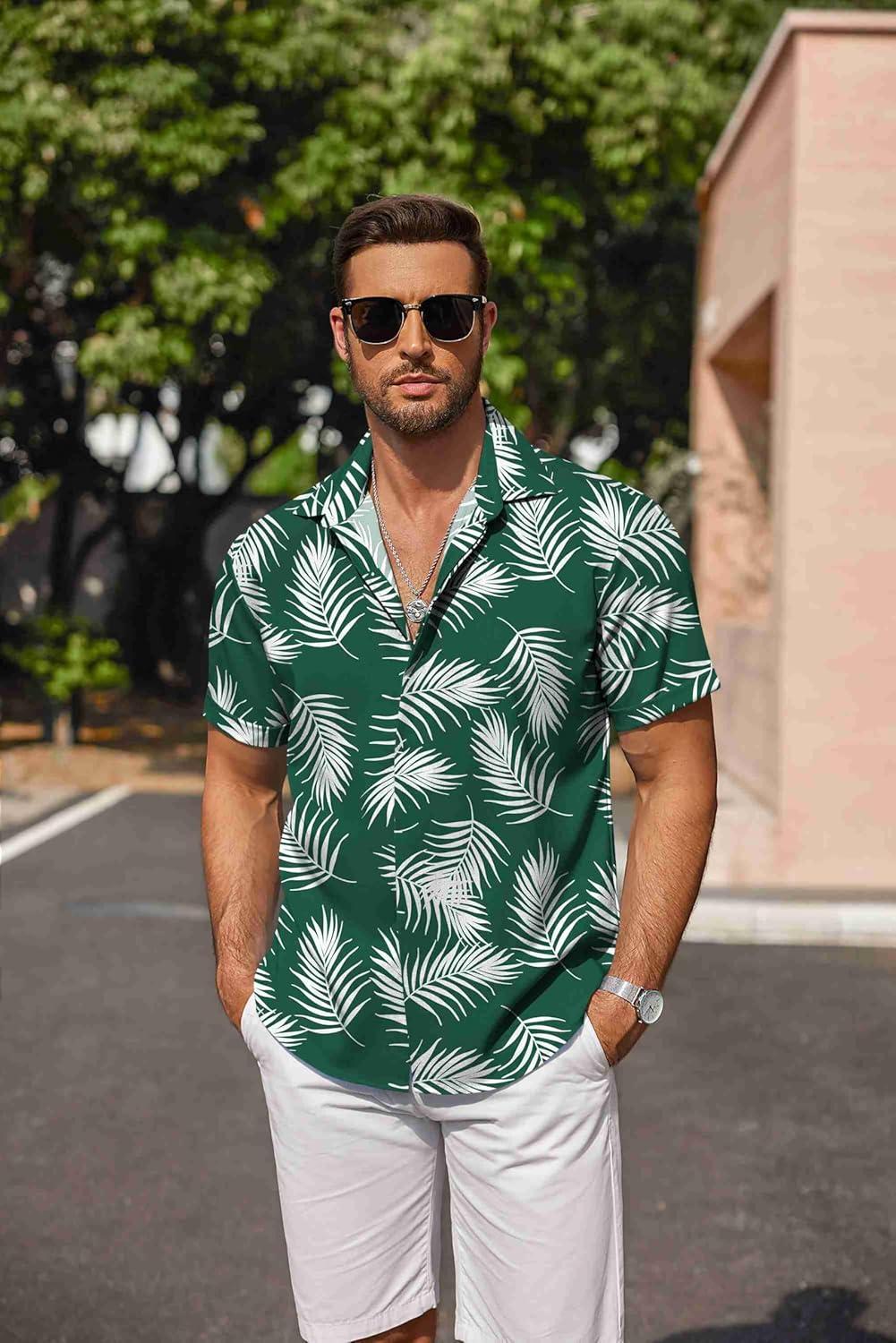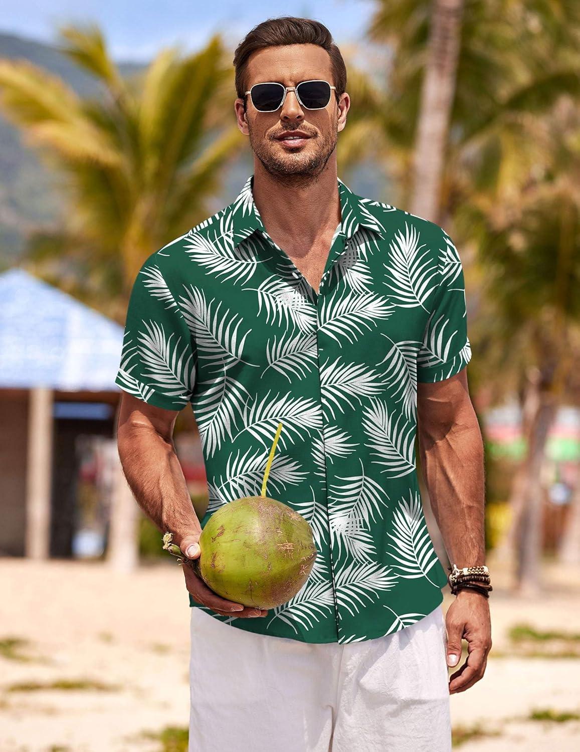 COOFANDY Men’s Linen Shirts Short Sleeve Casual Shirts Button Down Shirt for Men Beach Summer Wedding Shirt(Summer Floral-navy Blue)