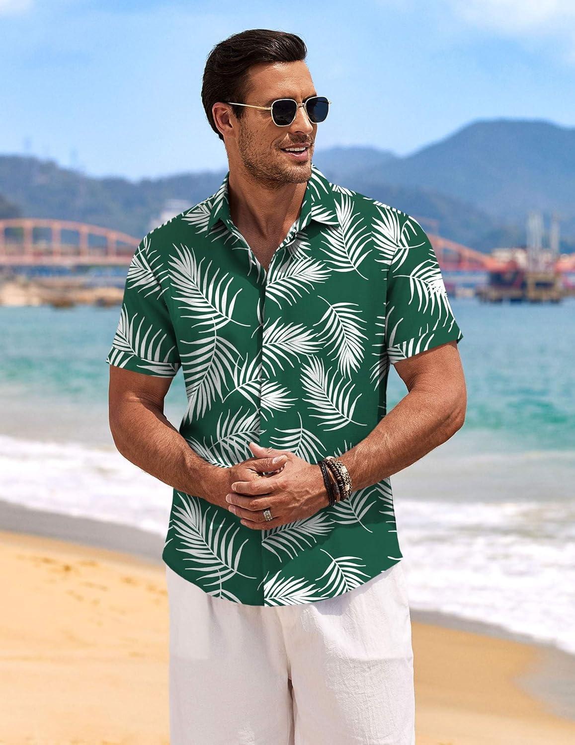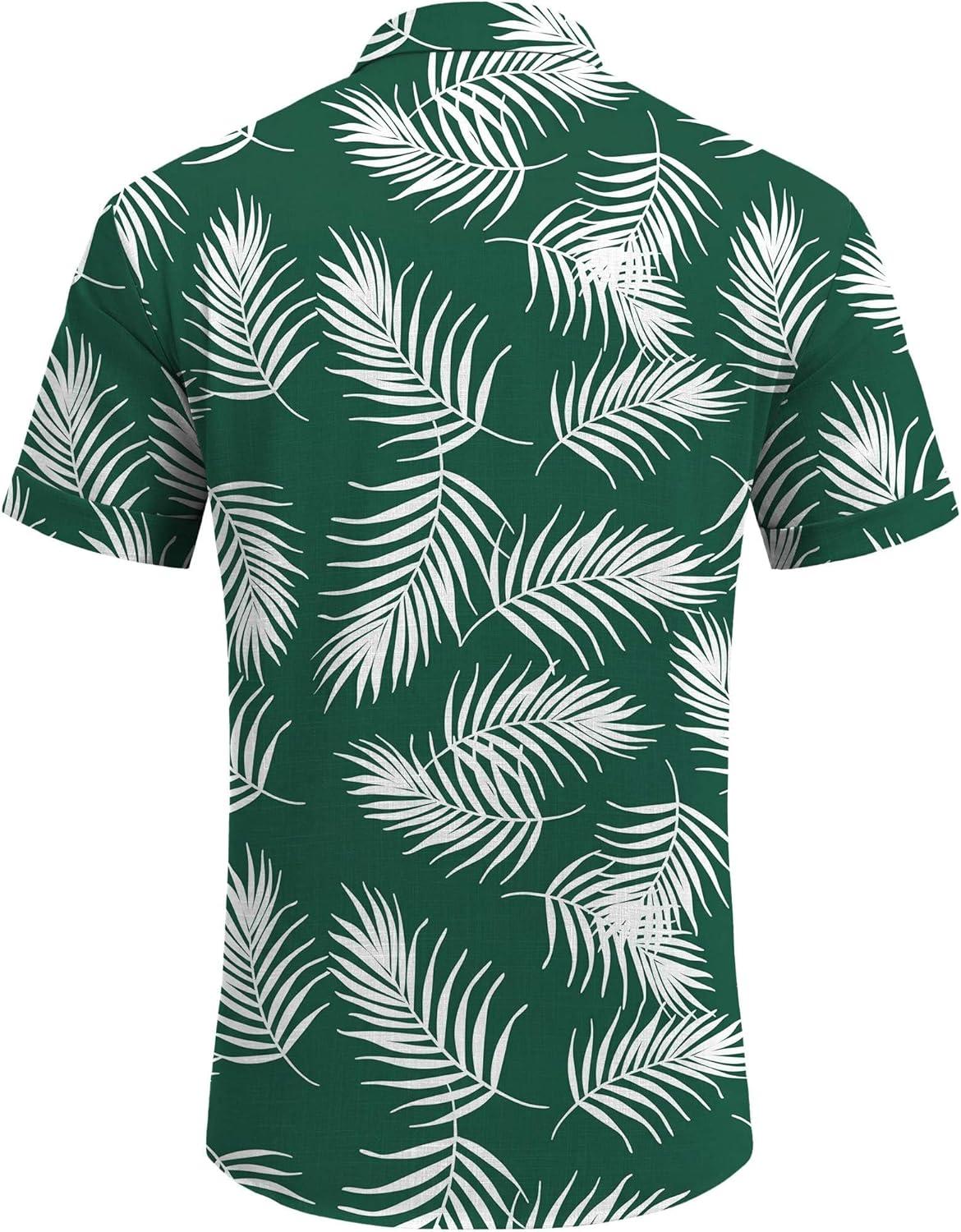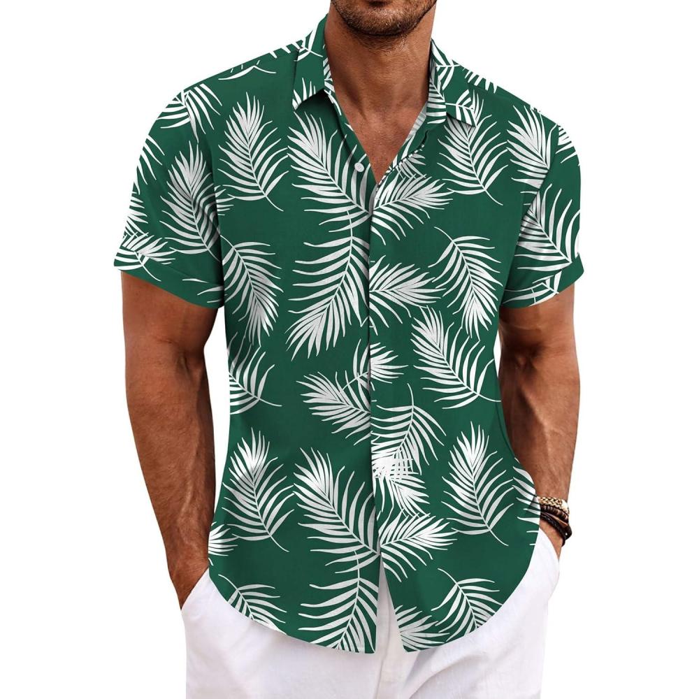 COOFANDY Men’s Linen Shirts Short Sleeve Casual Shirts Button Down Shirt for Men Beach Summer Wedding Shirt(Leaf-green)