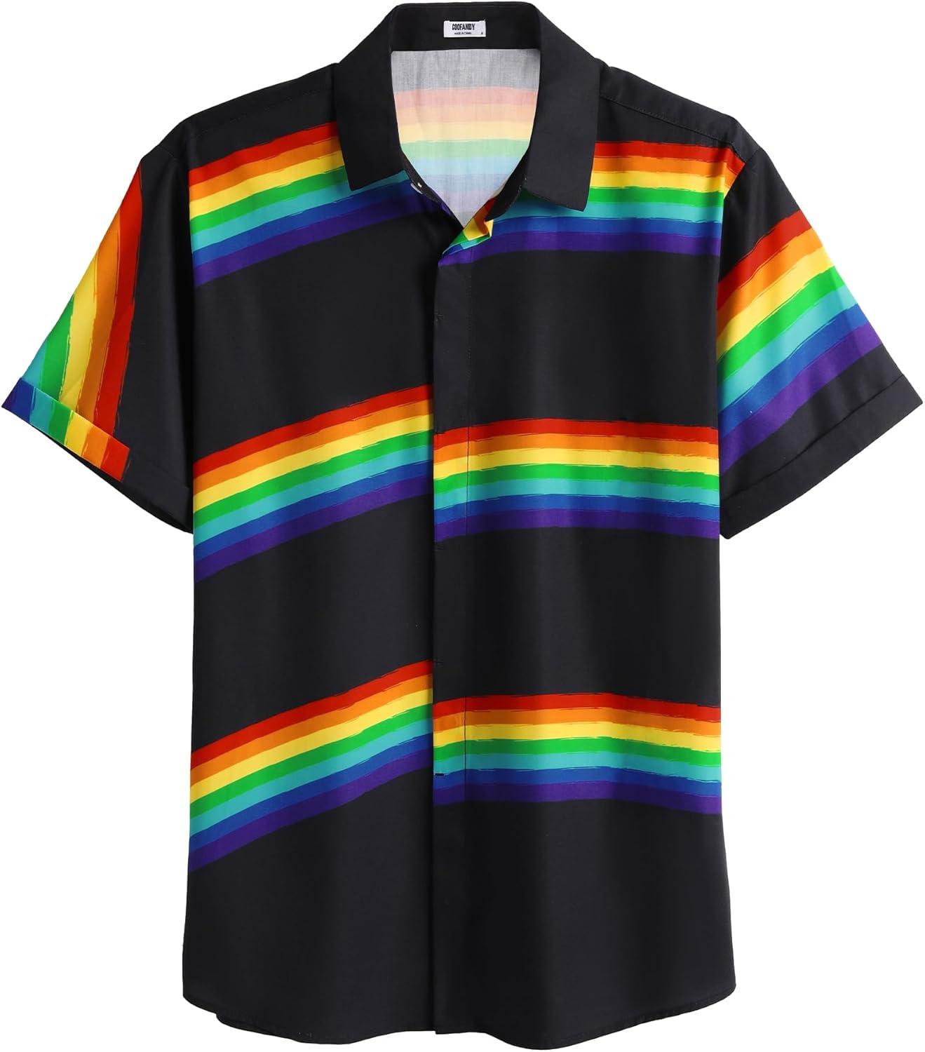 COOFANDY Men’s Linen Shirts Short Sleeve Casual Shirts Button Down Shirt for Men Beach Summer Wedding Shirt(Rainbow)