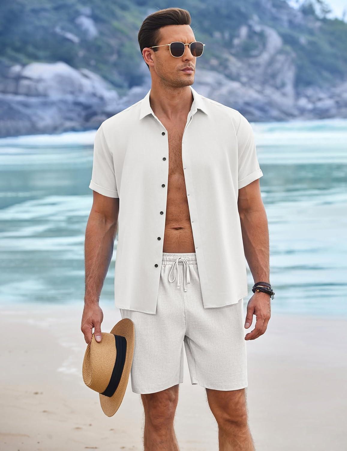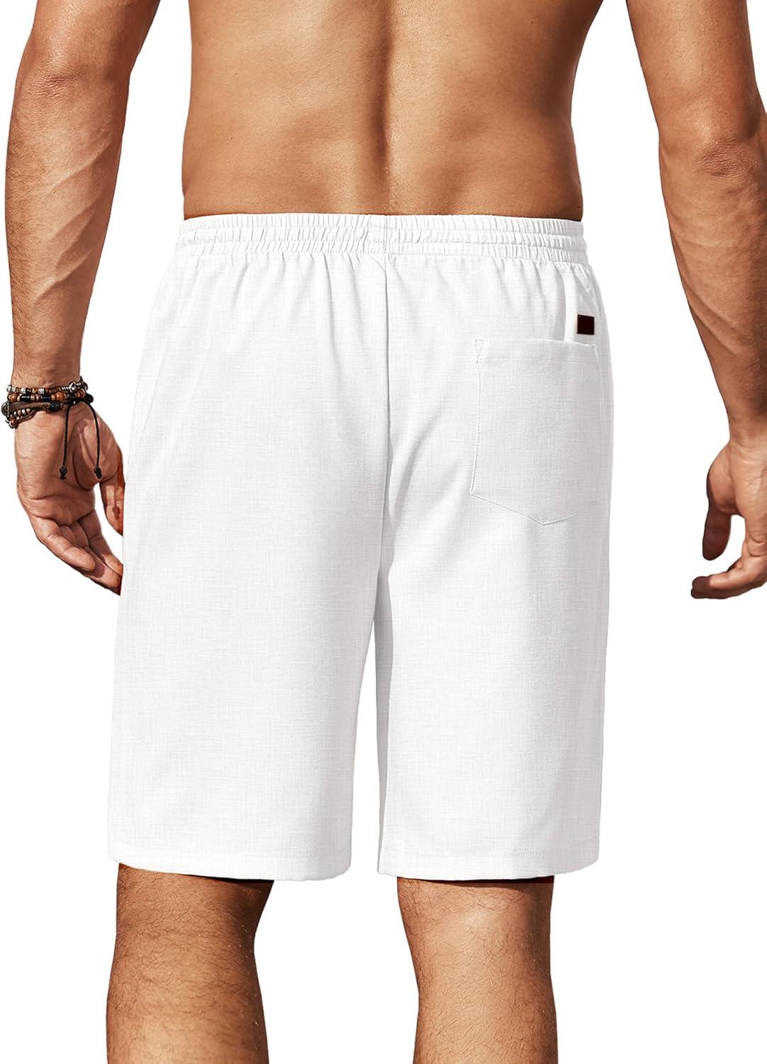 COOFANDY Mens Linen Shorts 9″ Elastic Waist Drawstring Casual Shorts Lightweight Summer Beach Shorts(A_white)