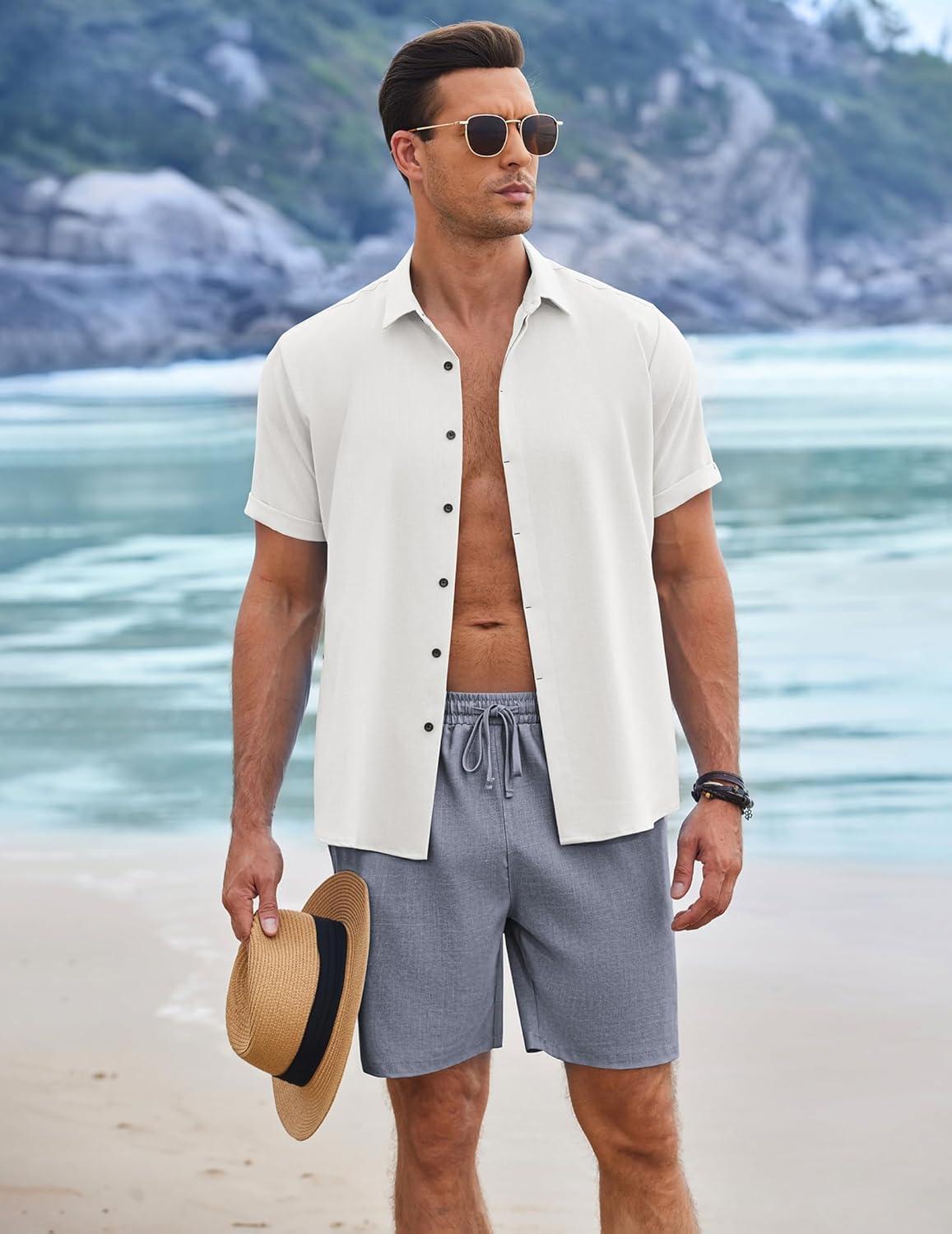 COOFANDY Mens Linen Shorts 9″ Elastic Waist Drawstring Casual Shorts Lightweight Summer Beach Shorts(Blue)