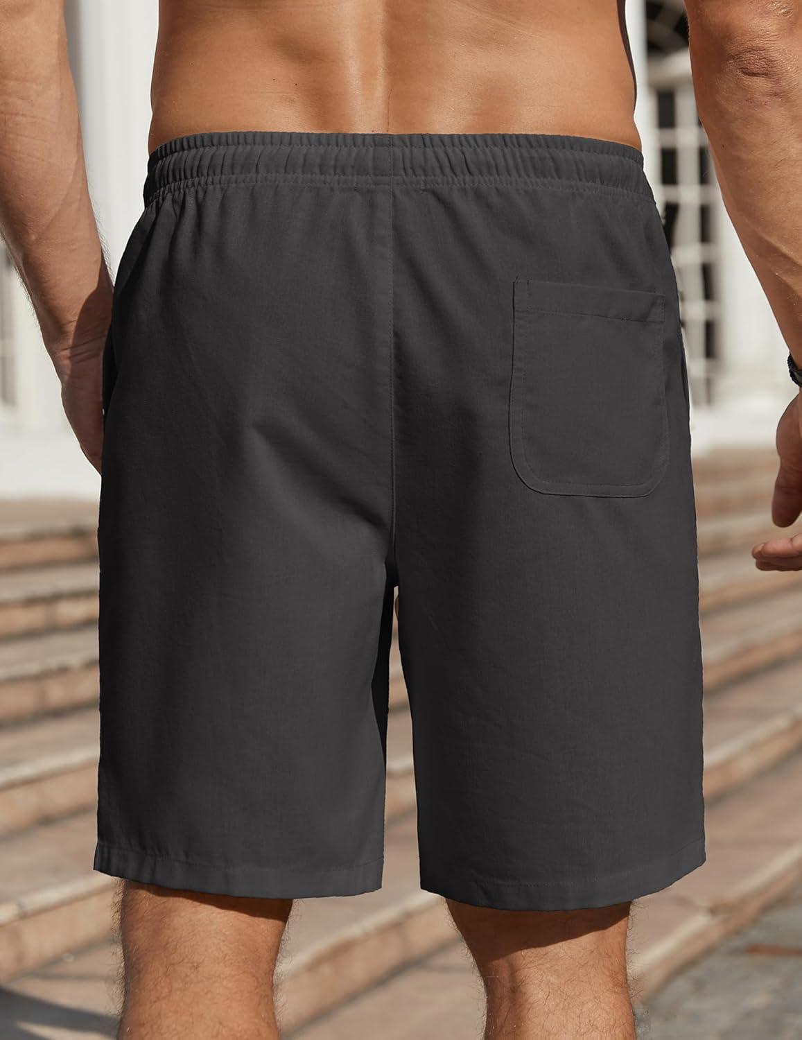 COOFANDY Men's Linen Shorts Casual Beach Shorts 9 inch Inseam Elastic Waist Drawstring Summer Shorts(Dark Gray)