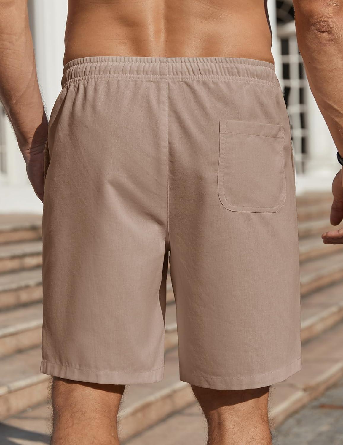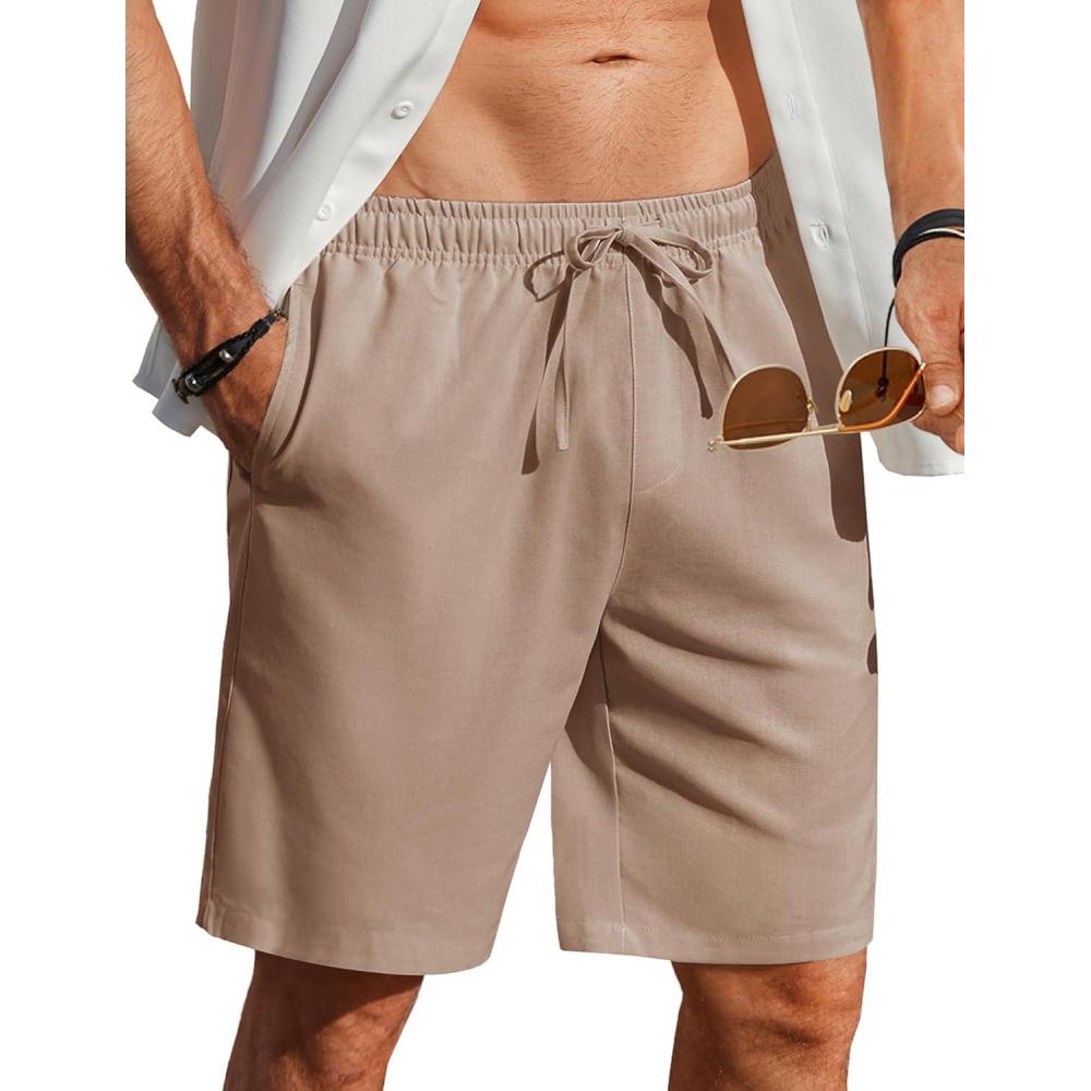 COOFANDY Men's Linen Shorts Casual Beach Shorts 9 inch Inseam Elastic Waist Drawstring Summer Shorts(Khaki)