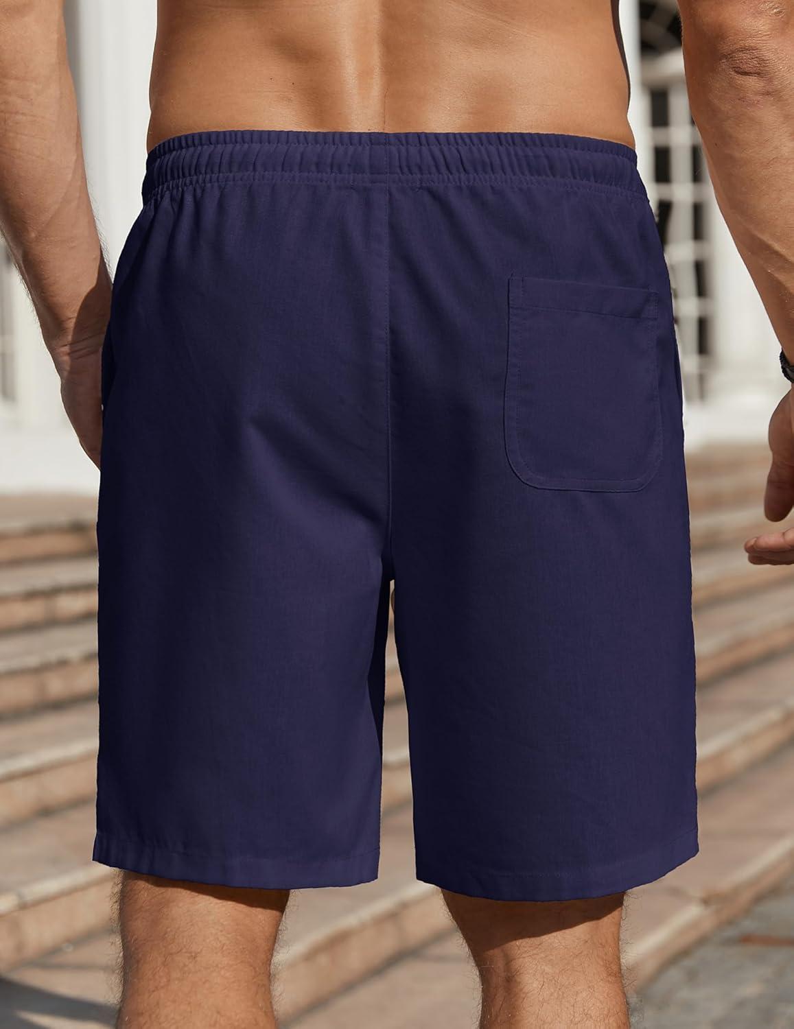 COOFANDY Men's Linen Shorts Casual Beach Shorts 9 inch Inseam Elastic Waist Drawstring Summer Shorts(Navy)