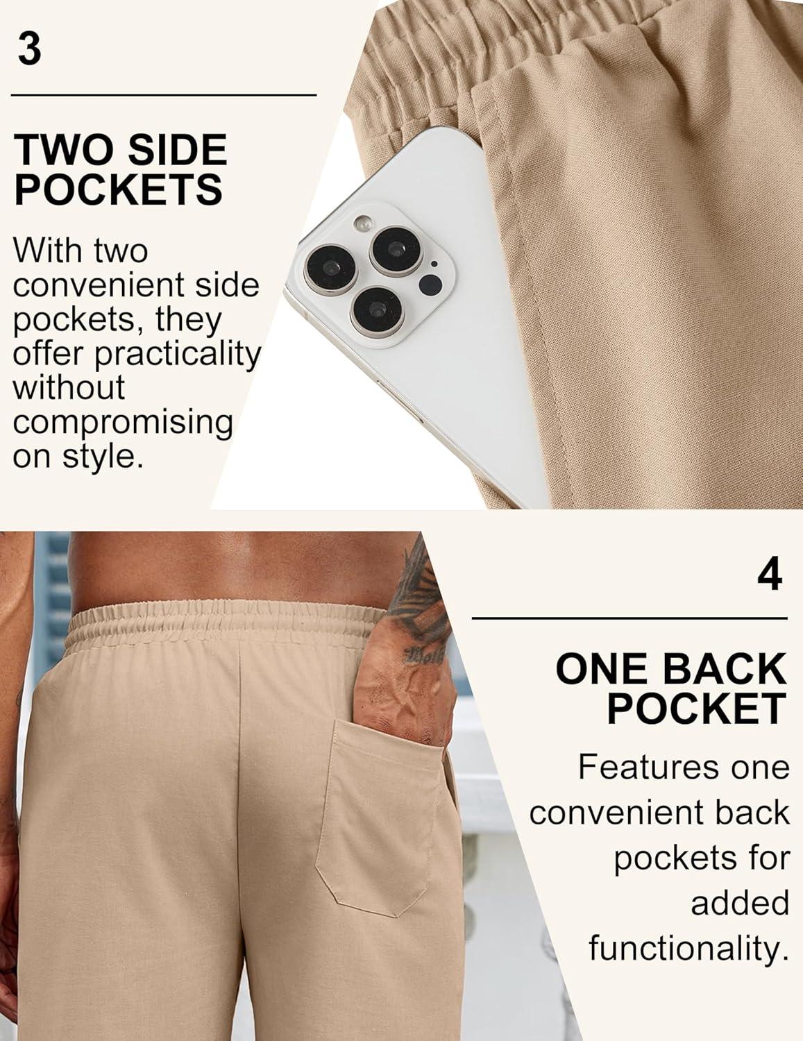 imageCOOFANDY Mens Linen Shorts Casual Drawstring Elastic Waist Lightweight Summer Vacation Beach ShortsBlack