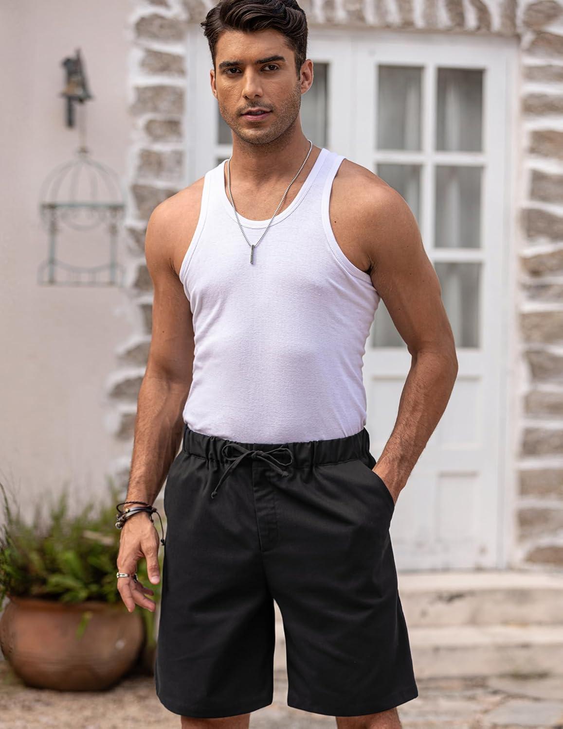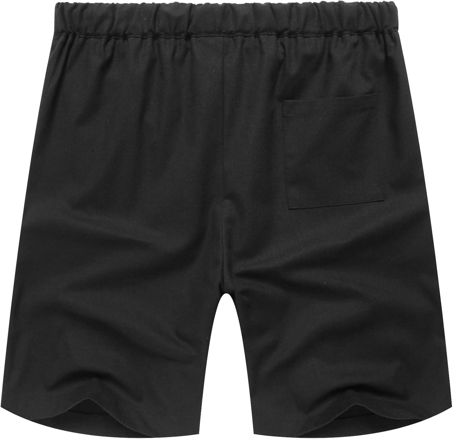 COOFANDY Men’s Linen Shorts Casual Elastic Waist Drawstring Short Summer Beach Vacation Shorts(Black)