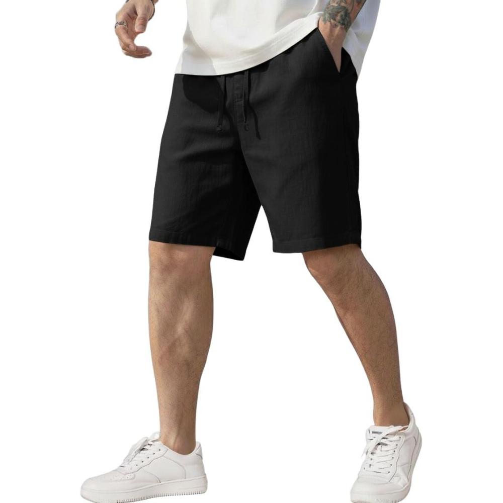 COOFANDY Men's Linen Shorts Casual Elastic Waist Drawstring Short Summer Beach Vacation Shorts(Black)