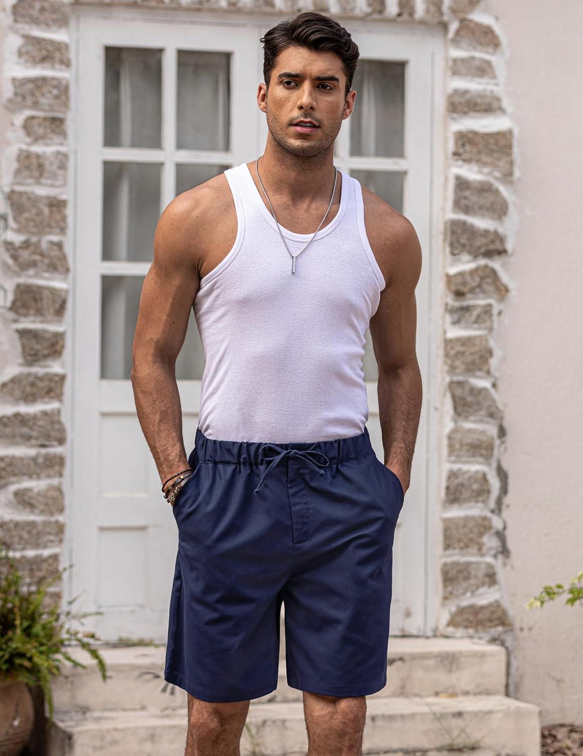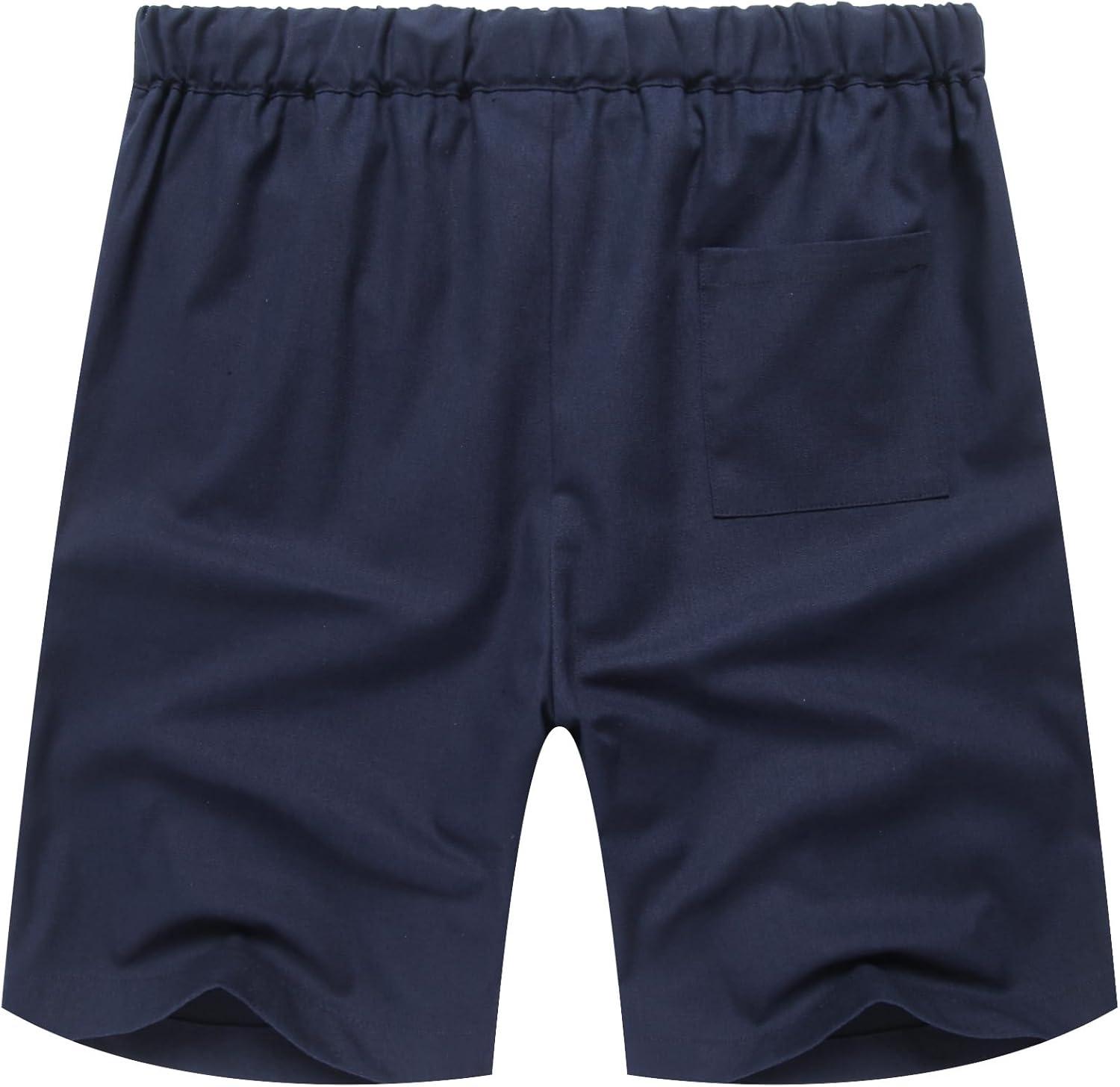 COOFANDY Men's Linen Shorts Casual Elastic Waist Drawstring Short Summer Beach Vacation Shorts(Navy Blue)