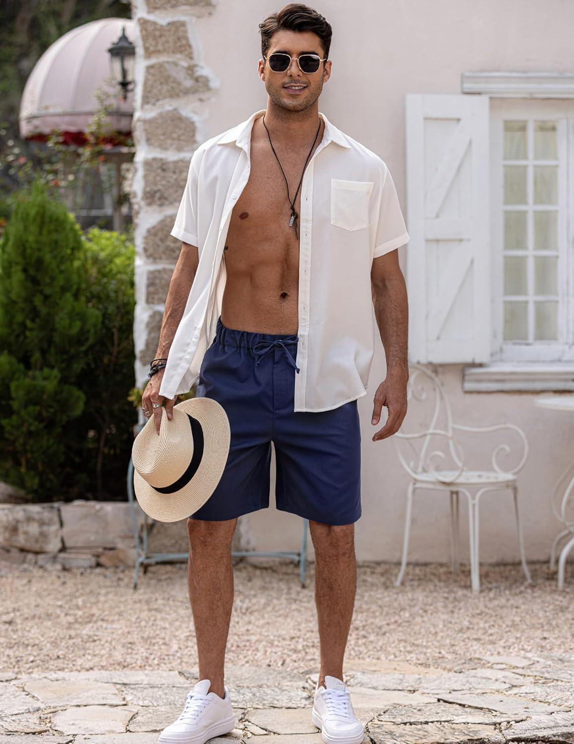 Be the first to review “COOFANDY Men’s Linen Shorts Casual Elastic Waist Drawstring Short Summer Beach Vacation Shorts(Navy Blue)”
