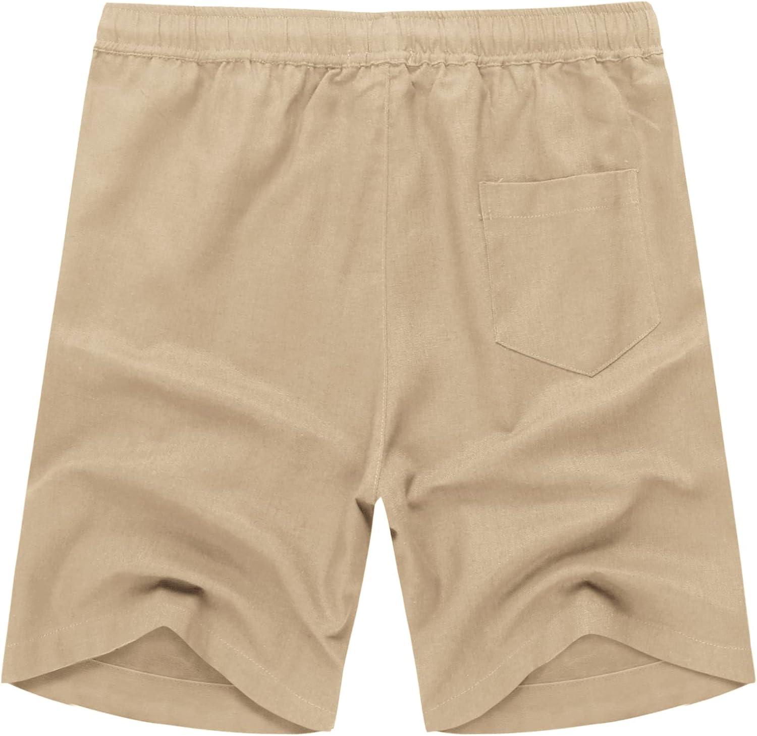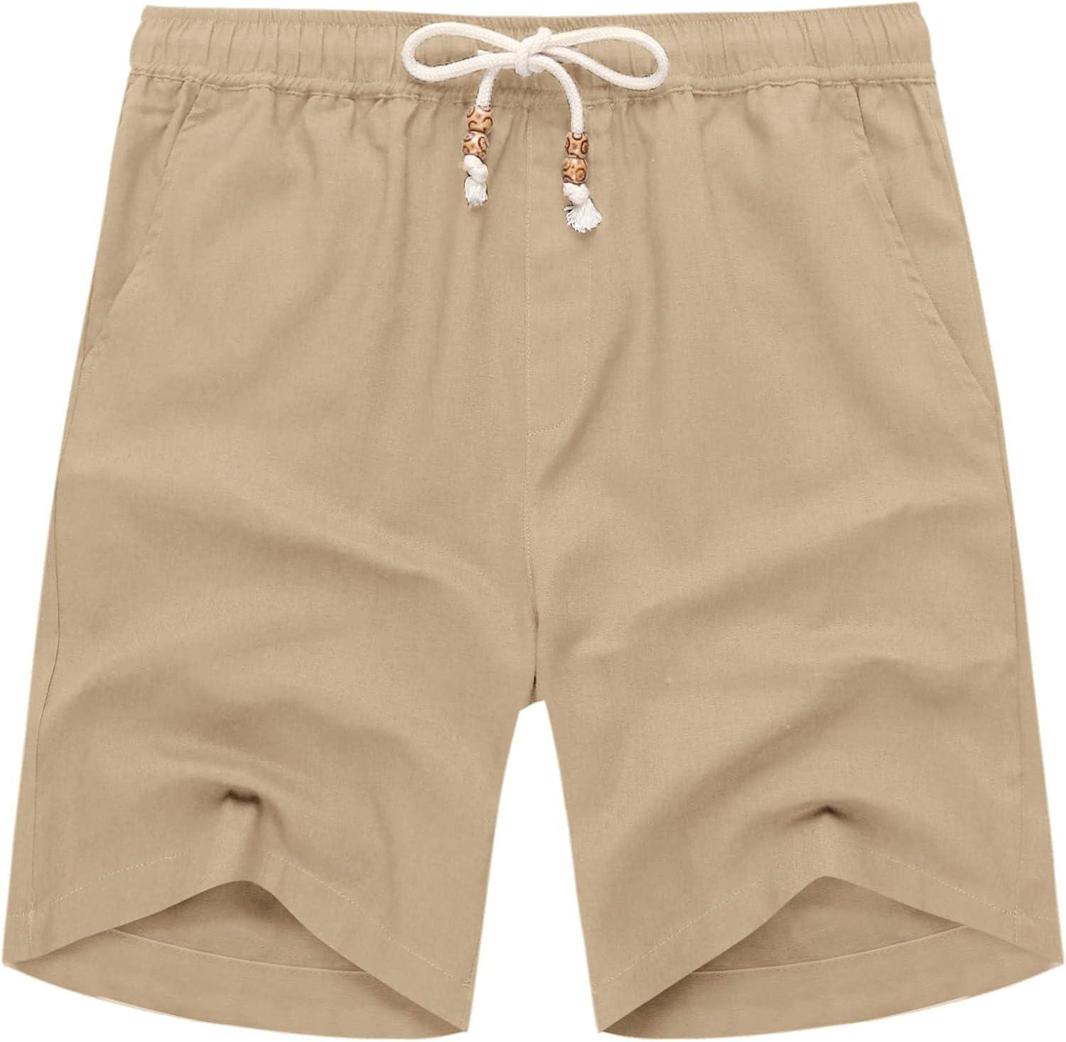 COOFANDY Men’s Linen Shorts Casual Elastic Waist Drawstring Summer Beach Shorts(1 Light Khaki)