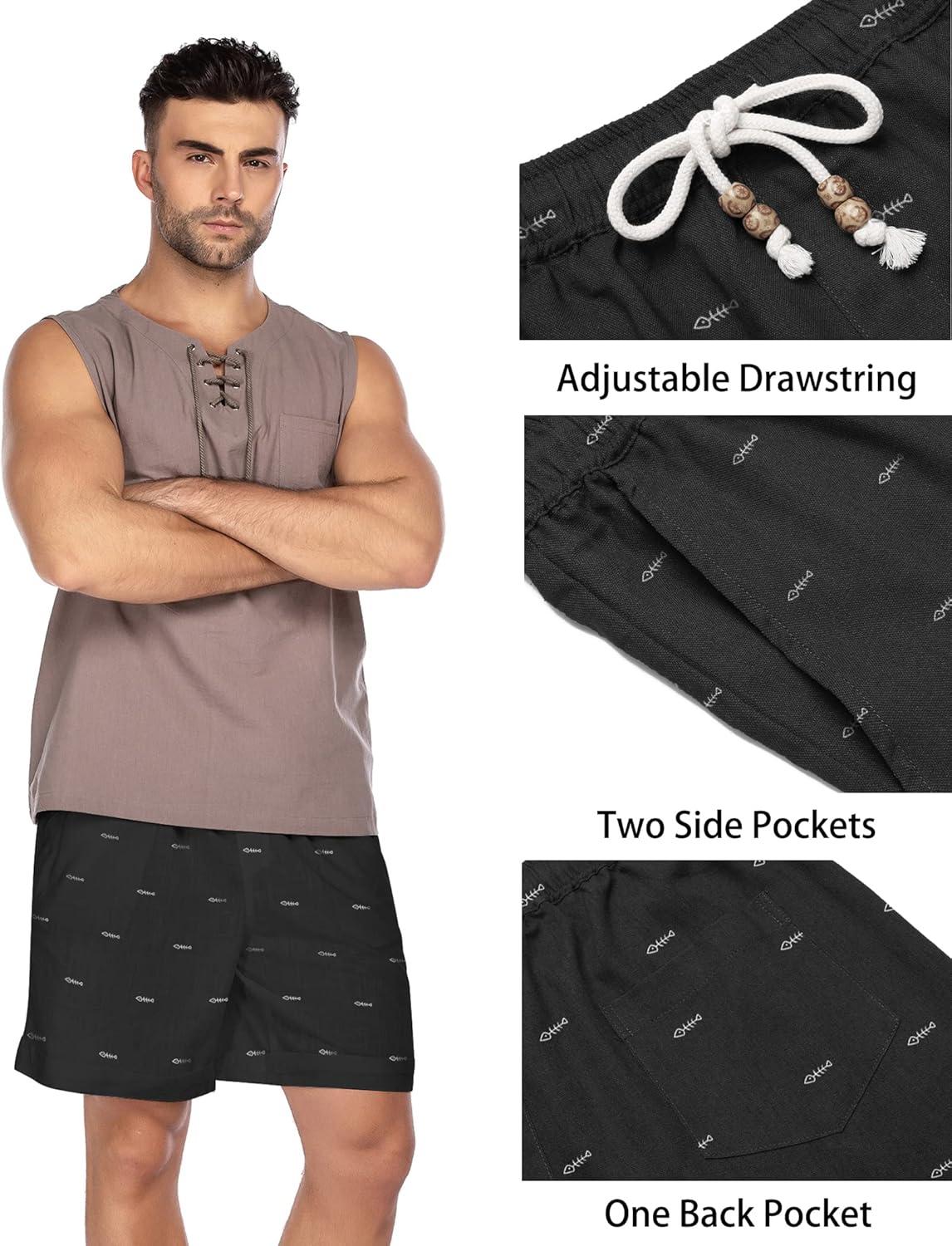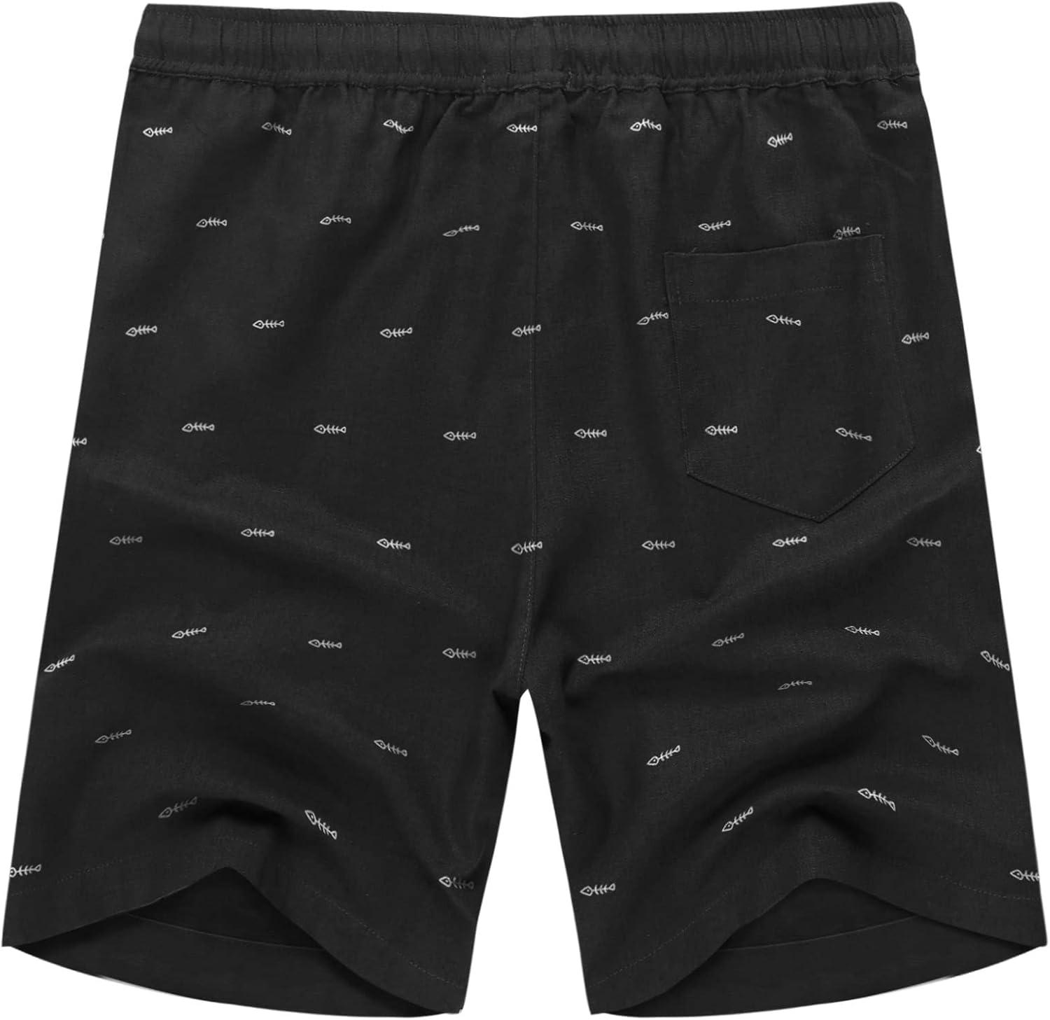 imageCOOFANDY Mens Linen Shorts Casual Elastic Waist Drawstring Summer Beach ShortsBlack Fish Bone