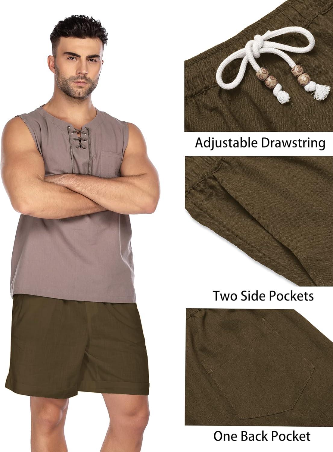 imageCOOFANDY Mens Linen Shorts Casual Elastic Waist Drawstring Summer Beach ShortsBrown