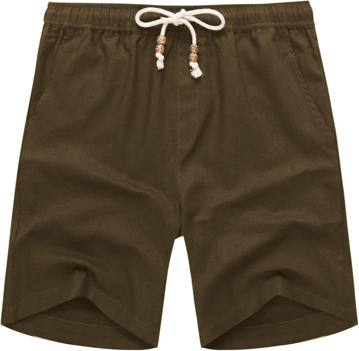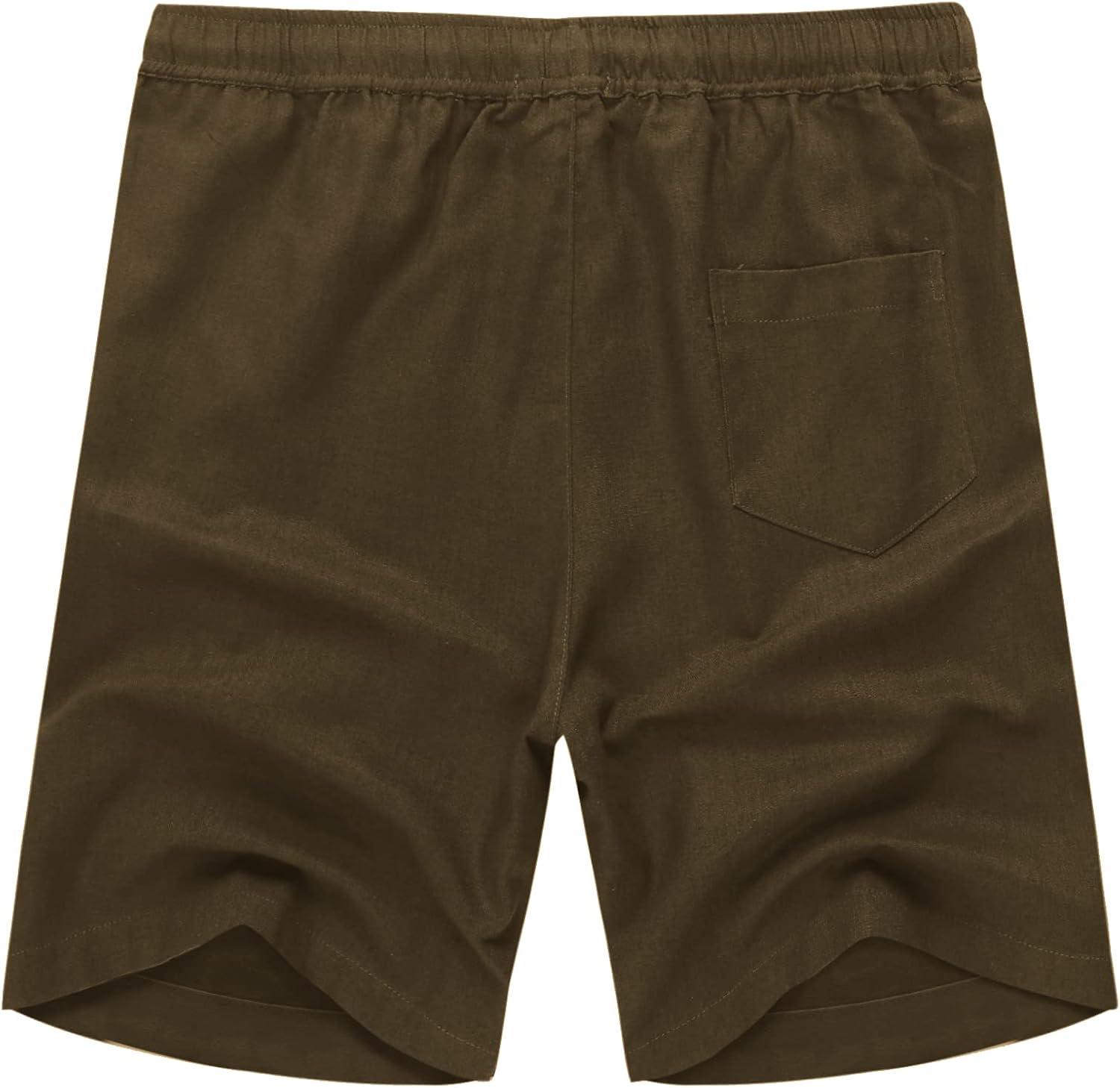 COOFANDY Men's Linen Shorts Casual Elastic Waist Drawstring Summer Beach Shorts(Brown)