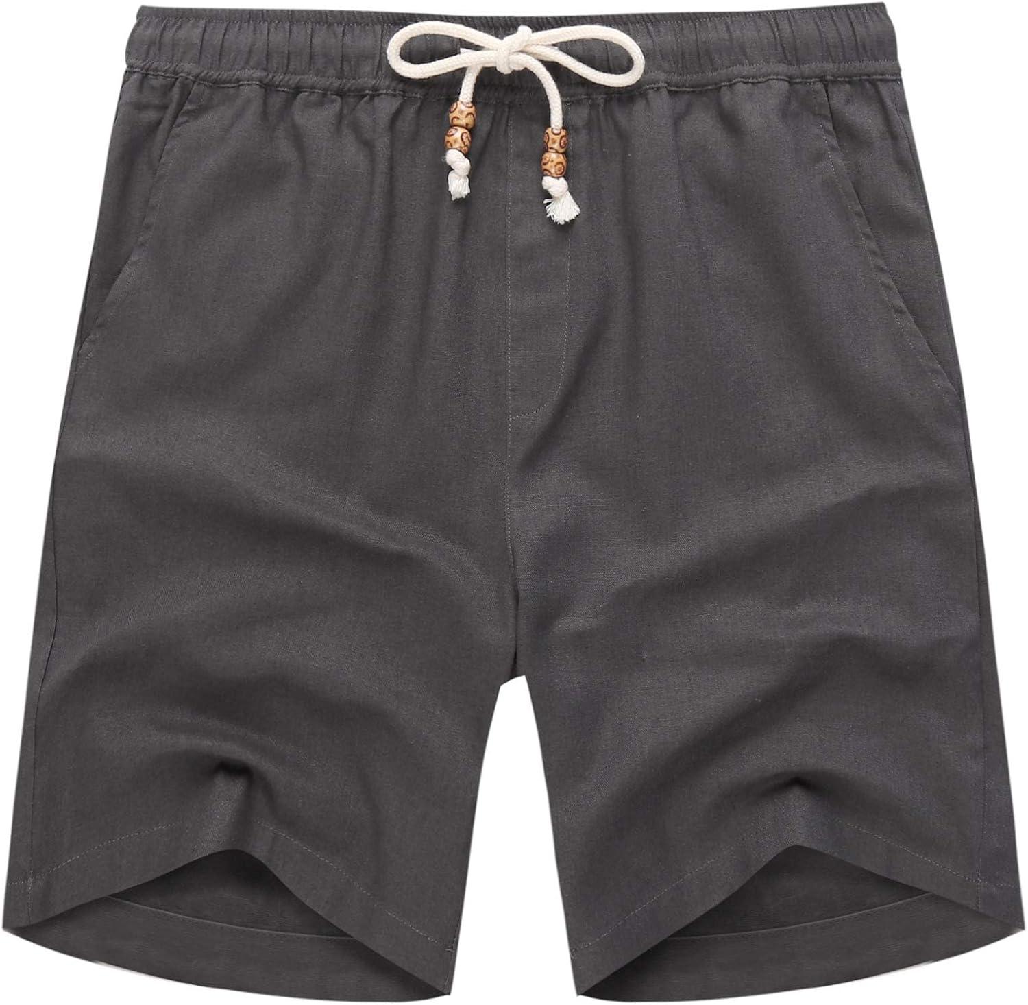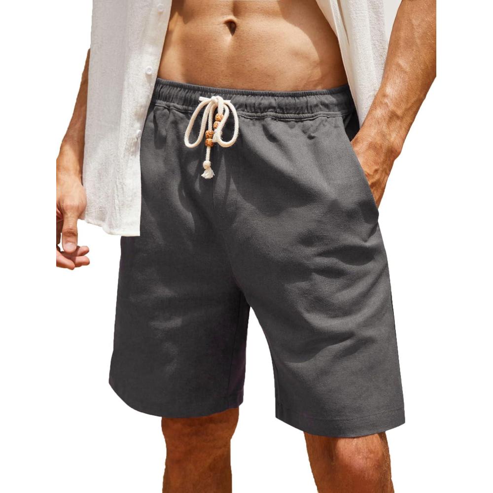 COOFANDY Men's Linen Shorts Casual Elastic Waist Drawstring Summer Beach Shorts(Dark Grey)