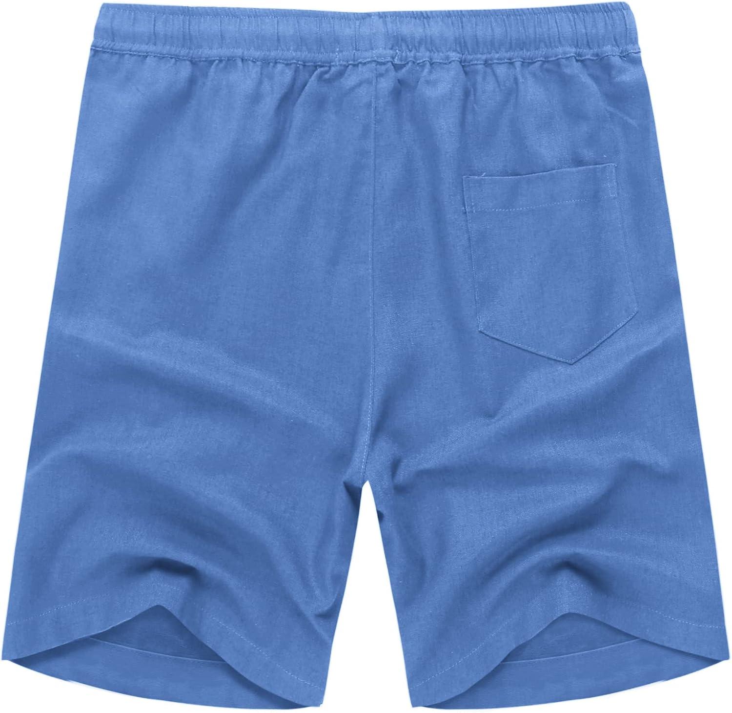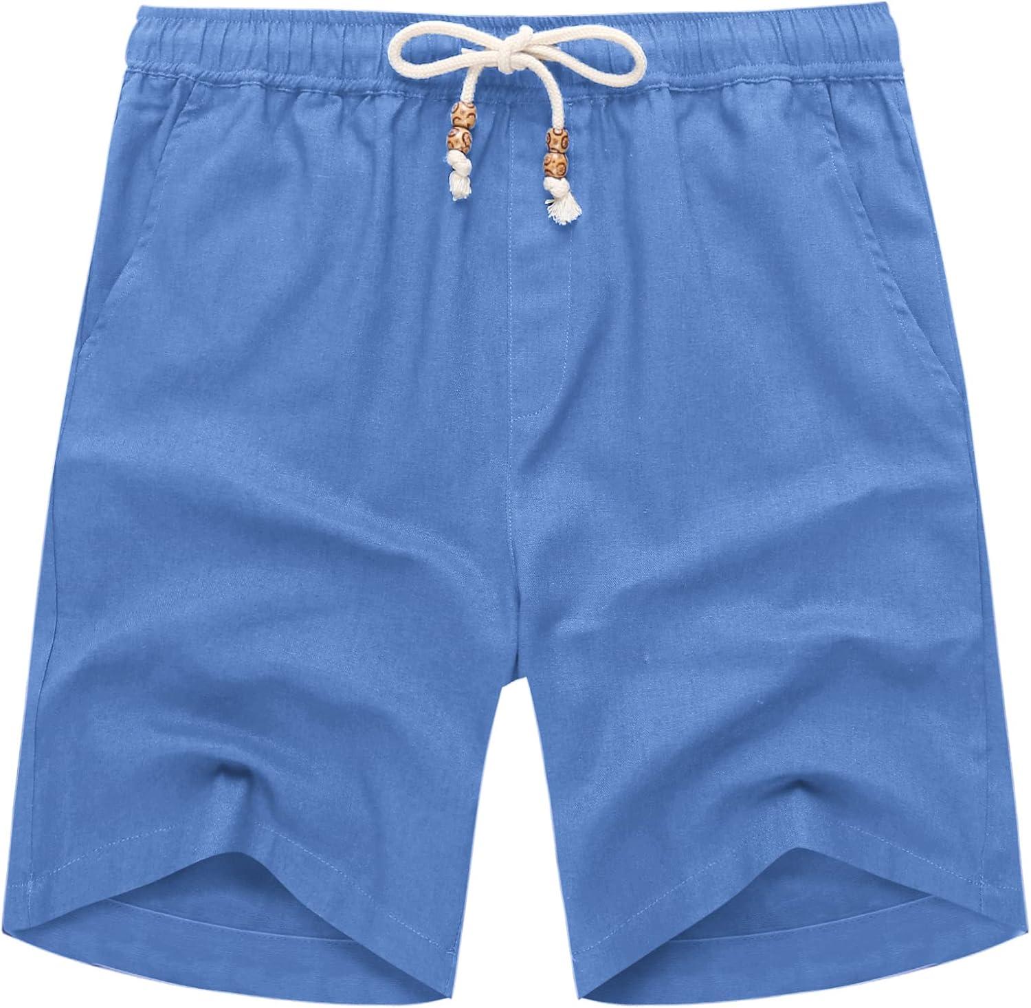 COOFANDY Men's Linen Shorts Casual Elastic Waist Drawstring Summer Beach Shorts(Denim Blue)
