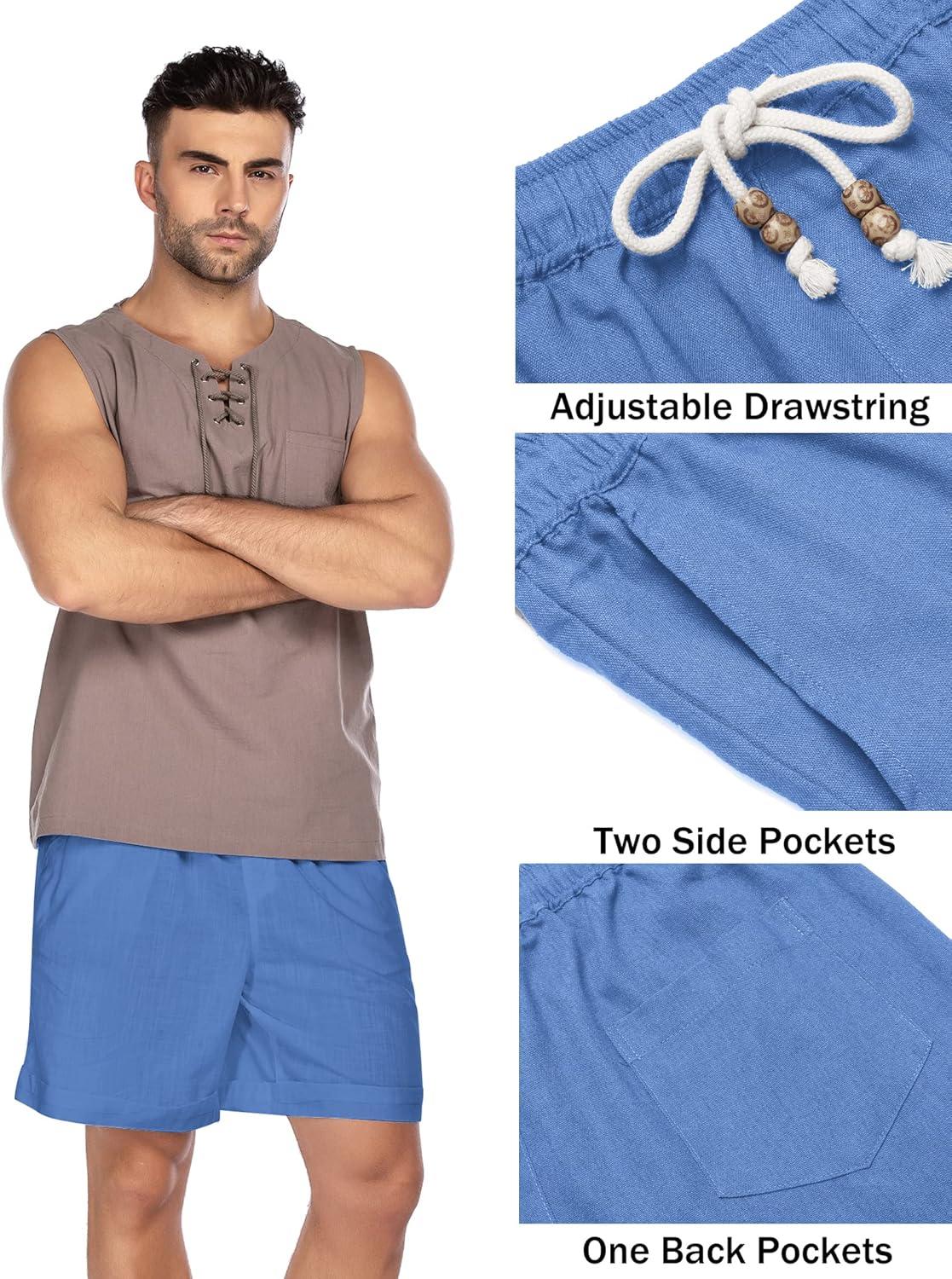 COOFANDY Men’s Linen Shorts Casual Elastic Waist Drawstring Summer Beach Shorts(Denim Blue)