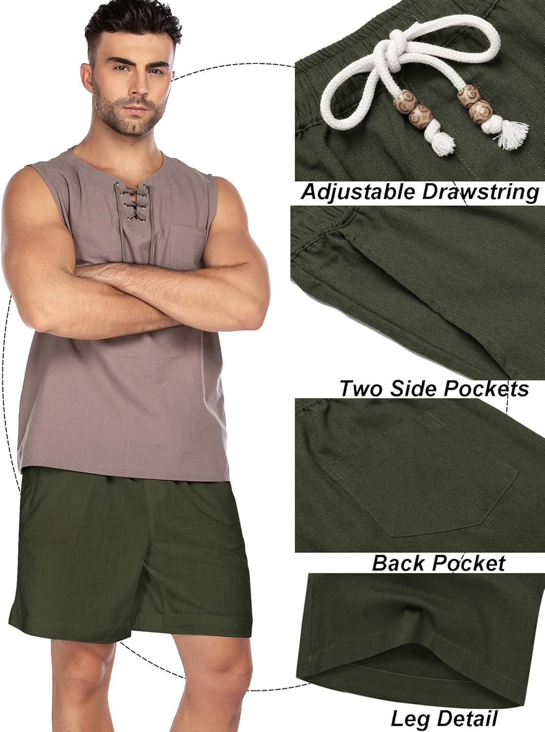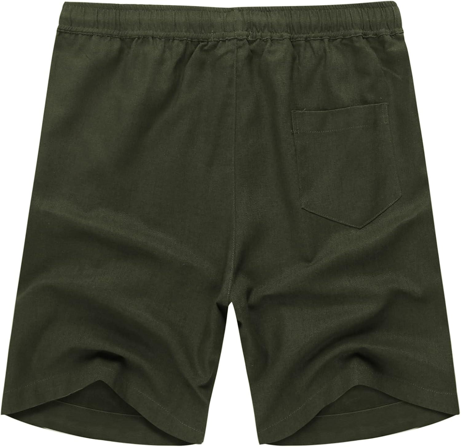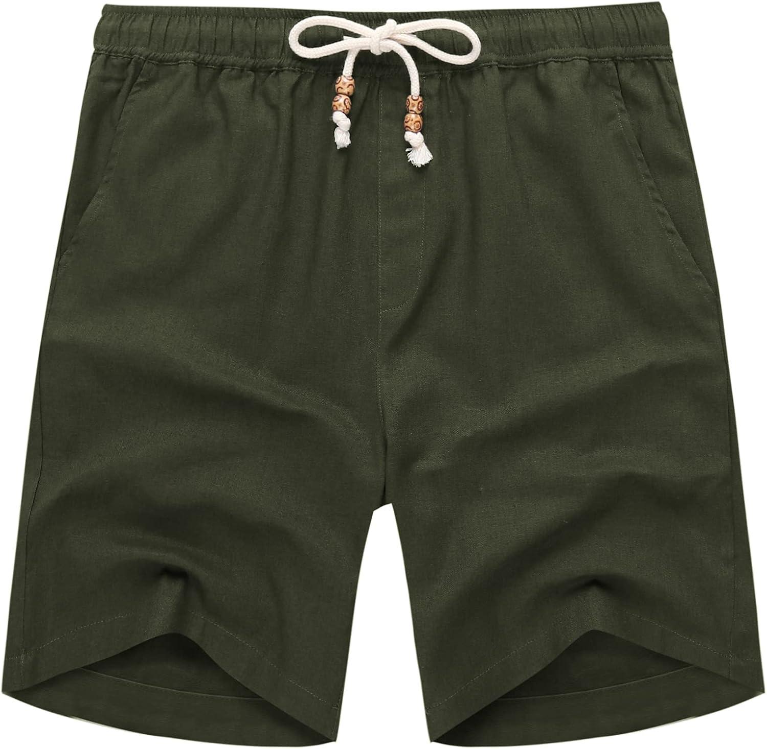 COOFANDY Men’s Linen Shorts Casual Elastic Waist Drawstring Summer Beach Shorts(Green)