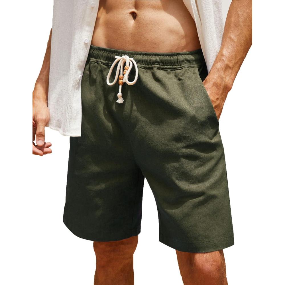 imageCOOFANDY Mens Linen Shorts Casual Elastic Waist Drawstring Summer Beach ShortsGreen