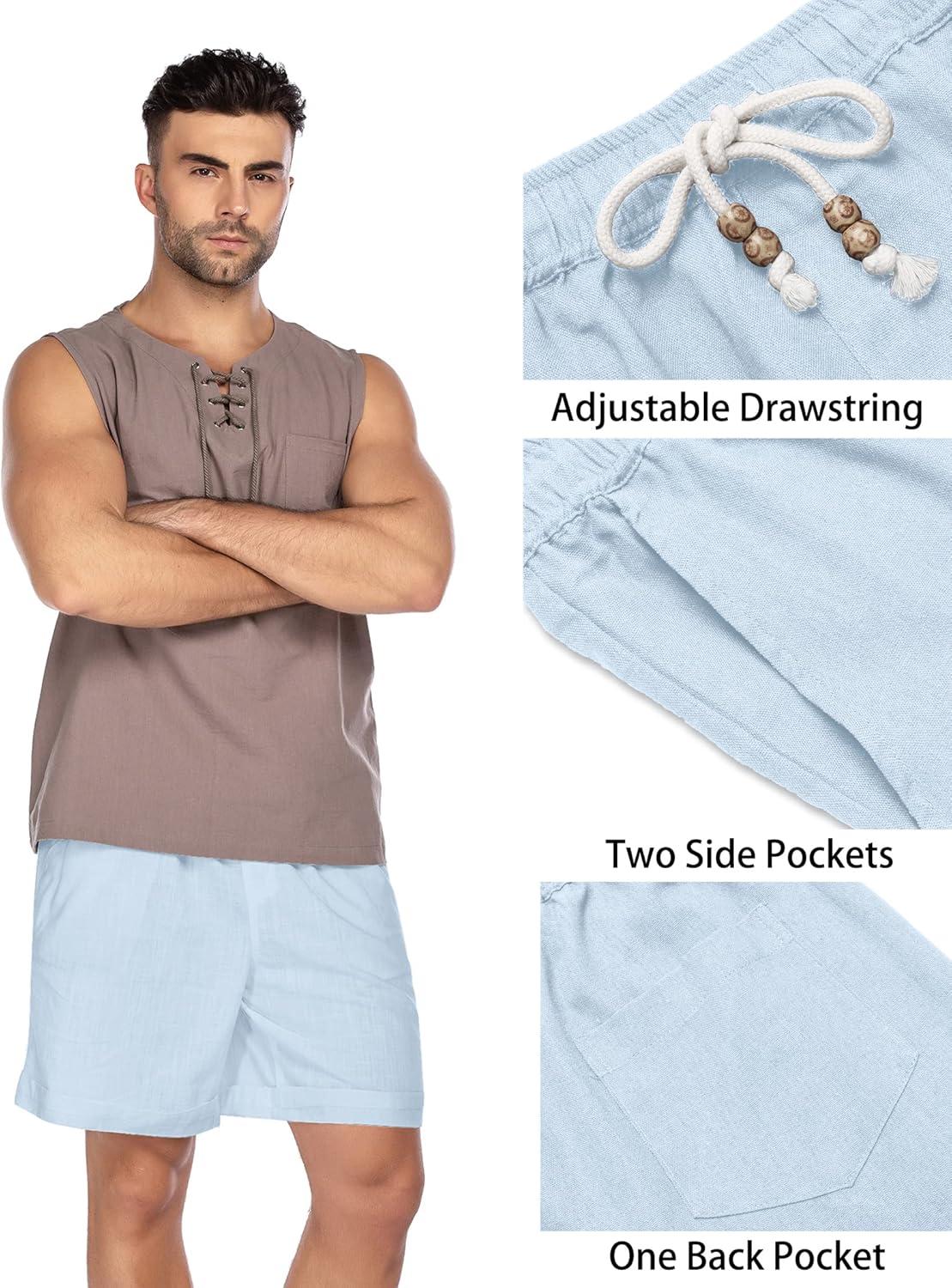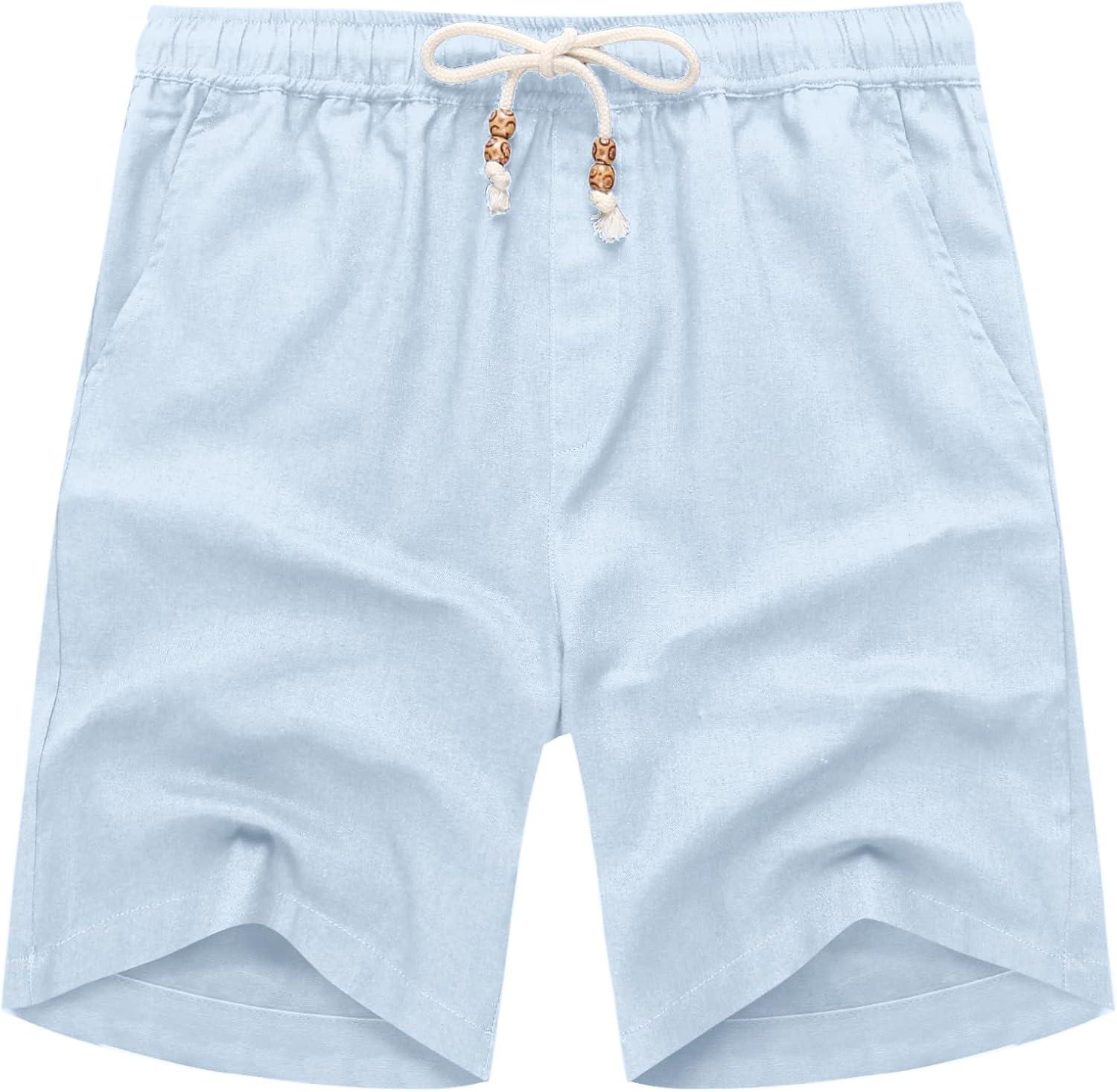 COOFANDY Men’s Linen Shorts Casual Elastic Waist Drawstring Summer Beach Shorts(Light Blue)
