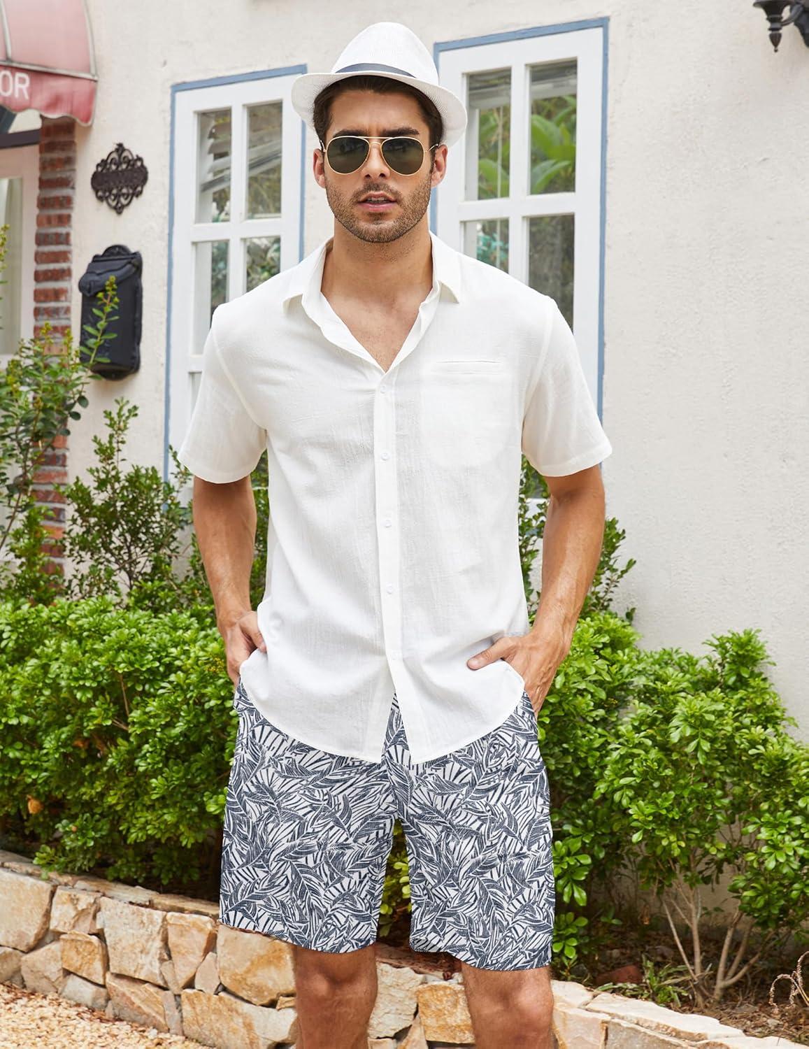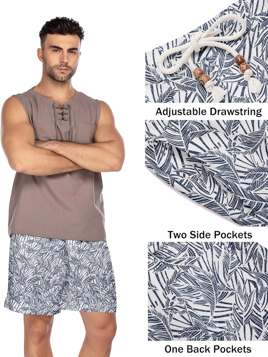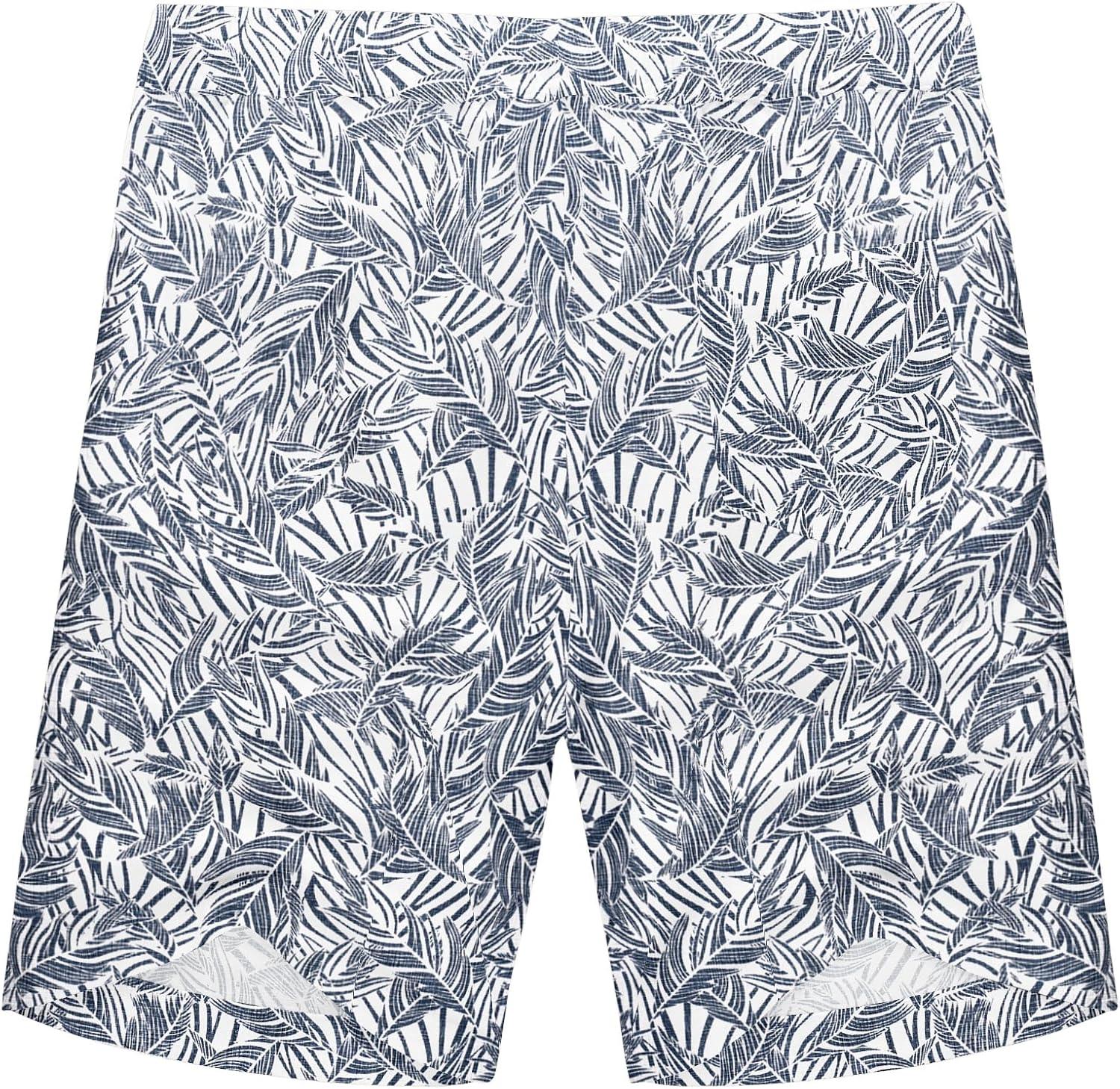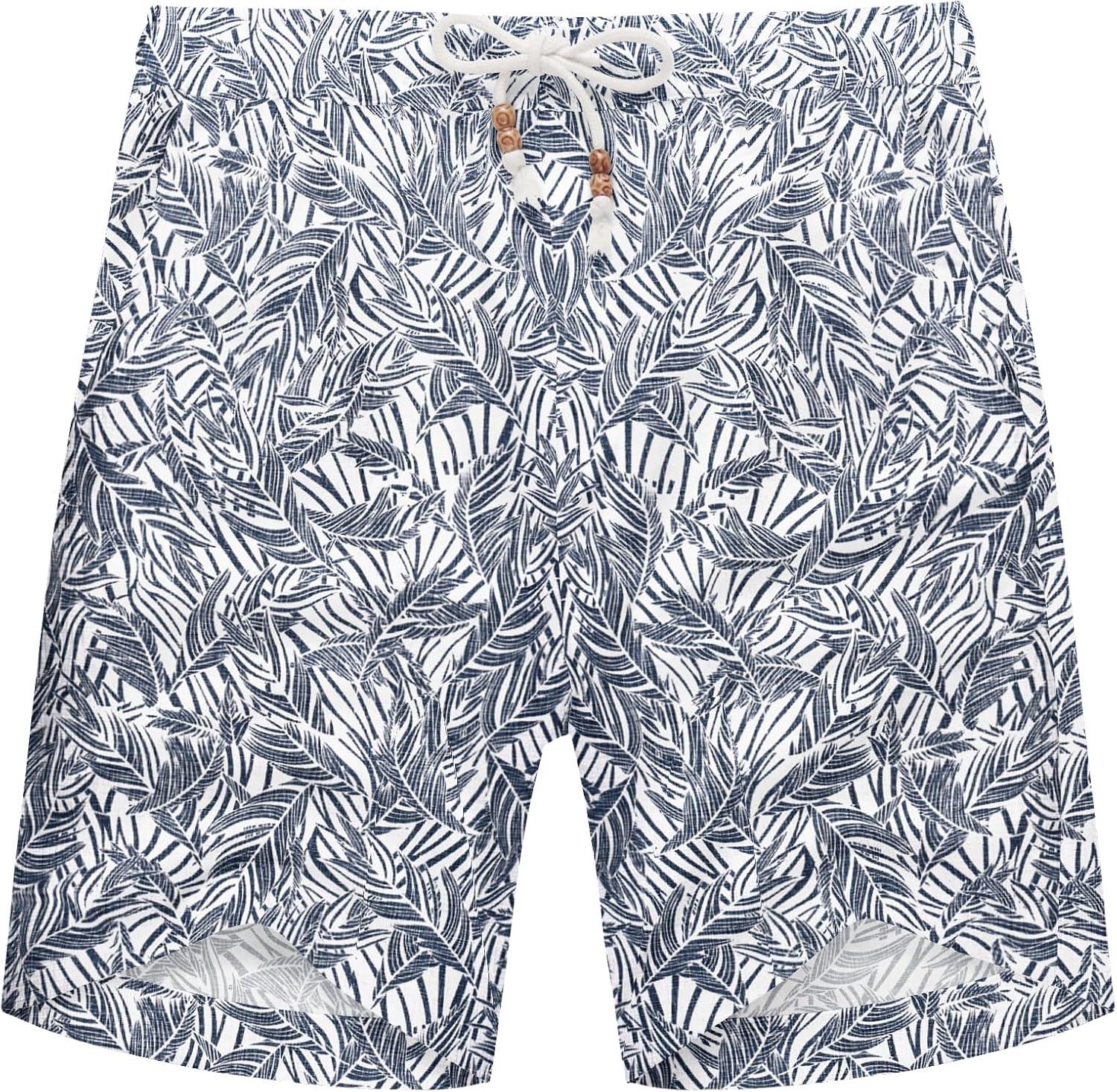 COOFANDY Men's Linen Shorts Casual Elastic Waist Drawstring Summer Beach Shorts(Navy Leaf)