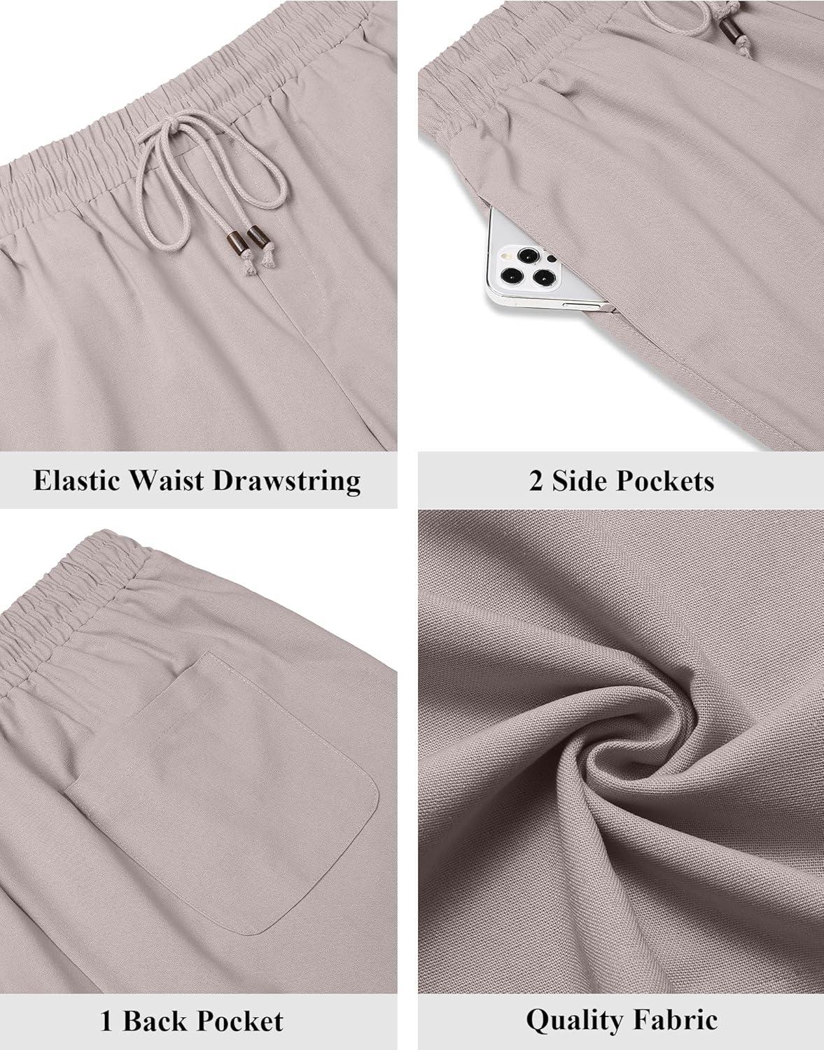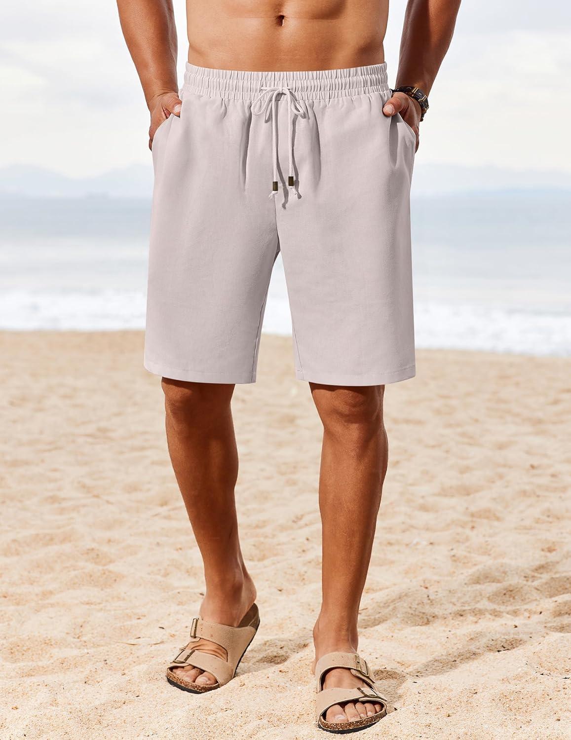 COOFANDY Men's Linen Shorts Casual Summer Beach Shorts Elastic Waist Drawstring Vacation Shorts with Pockets(Light Gray)