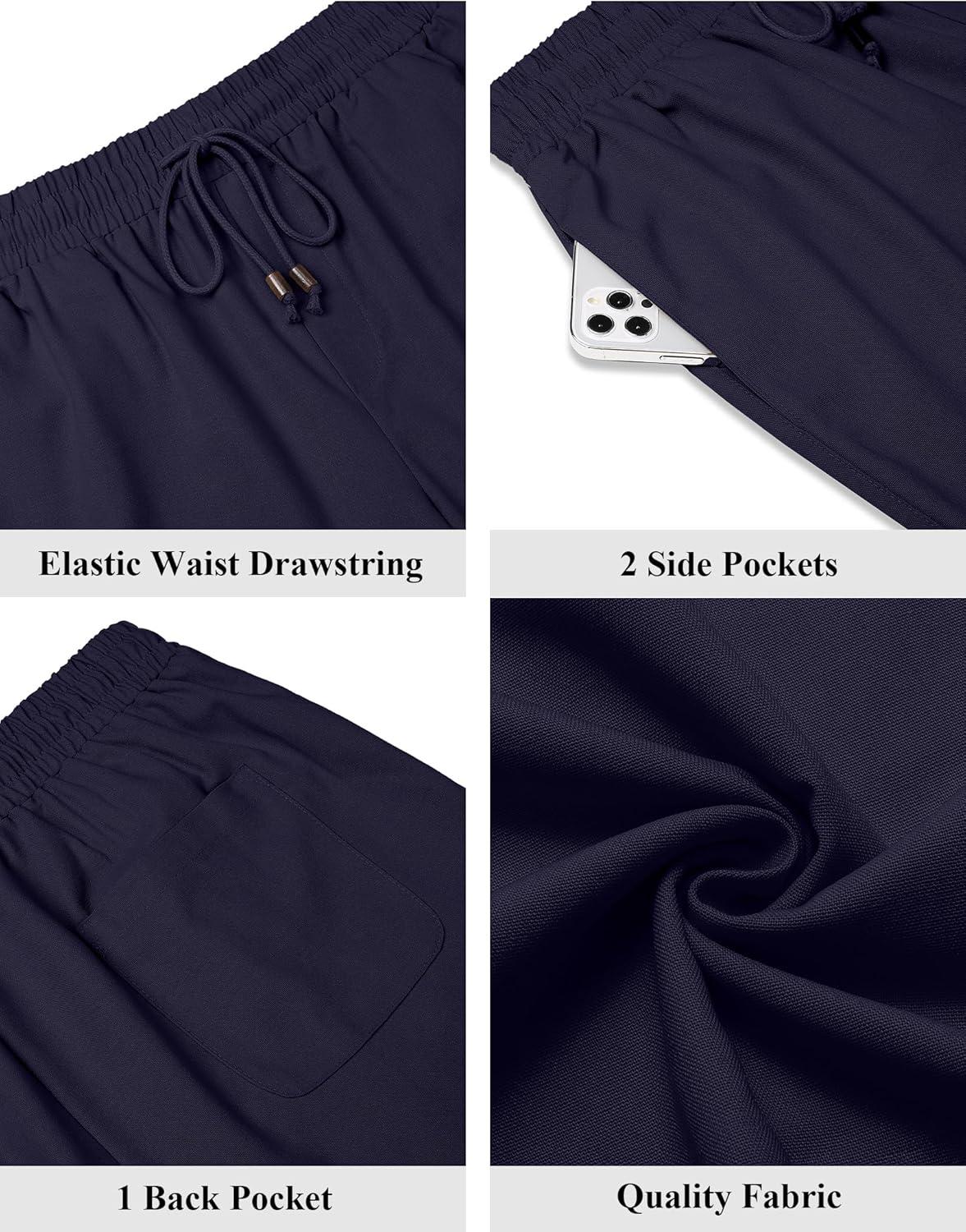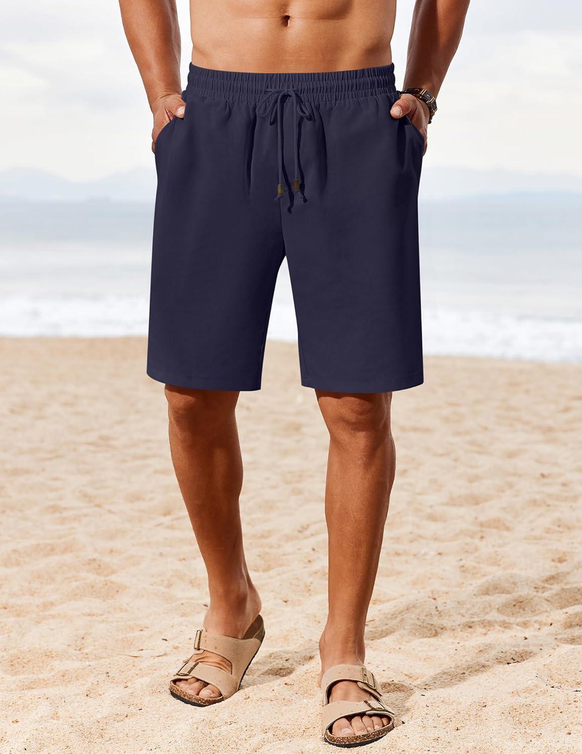 COOFANDY Men's Linen Shorts Casual Summer Beach Shorts Elastic Waist Drawstring Vacation Shorts with Pockets(Navy Blue)