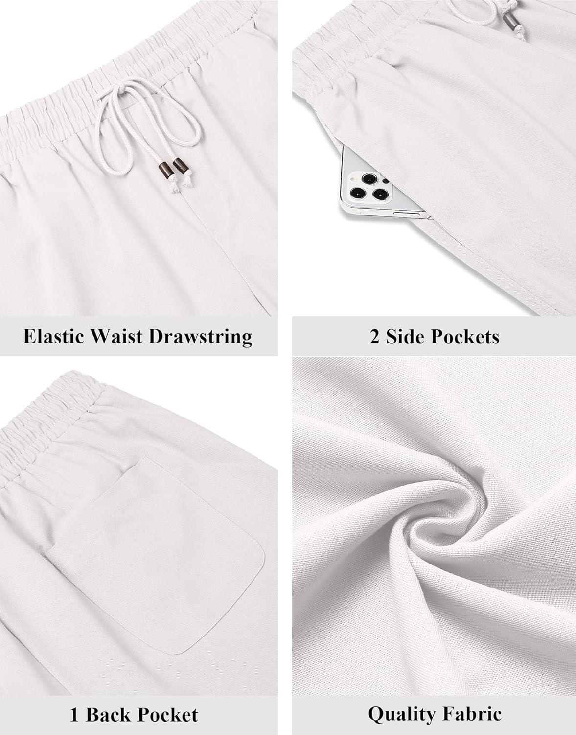 COOFANDY Men's Linen Shorts Casual Summer Beach Shorts Elastic Waist Drawstring Vacation Shorts with Pockets(White)