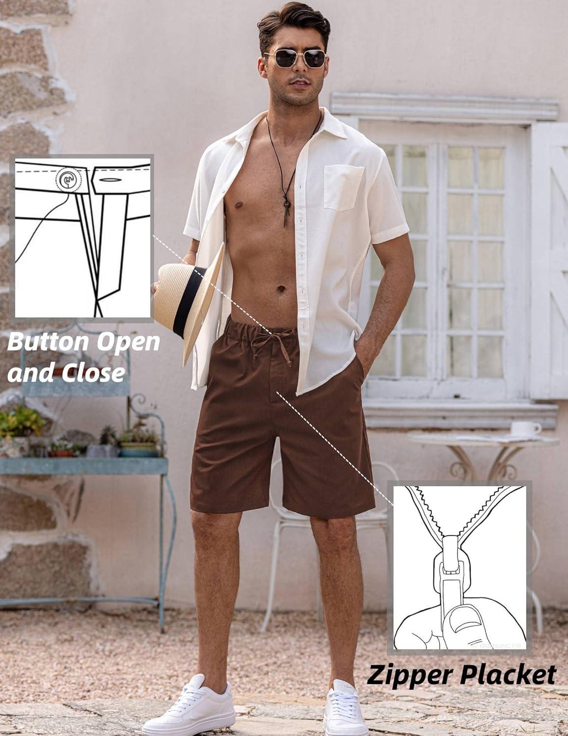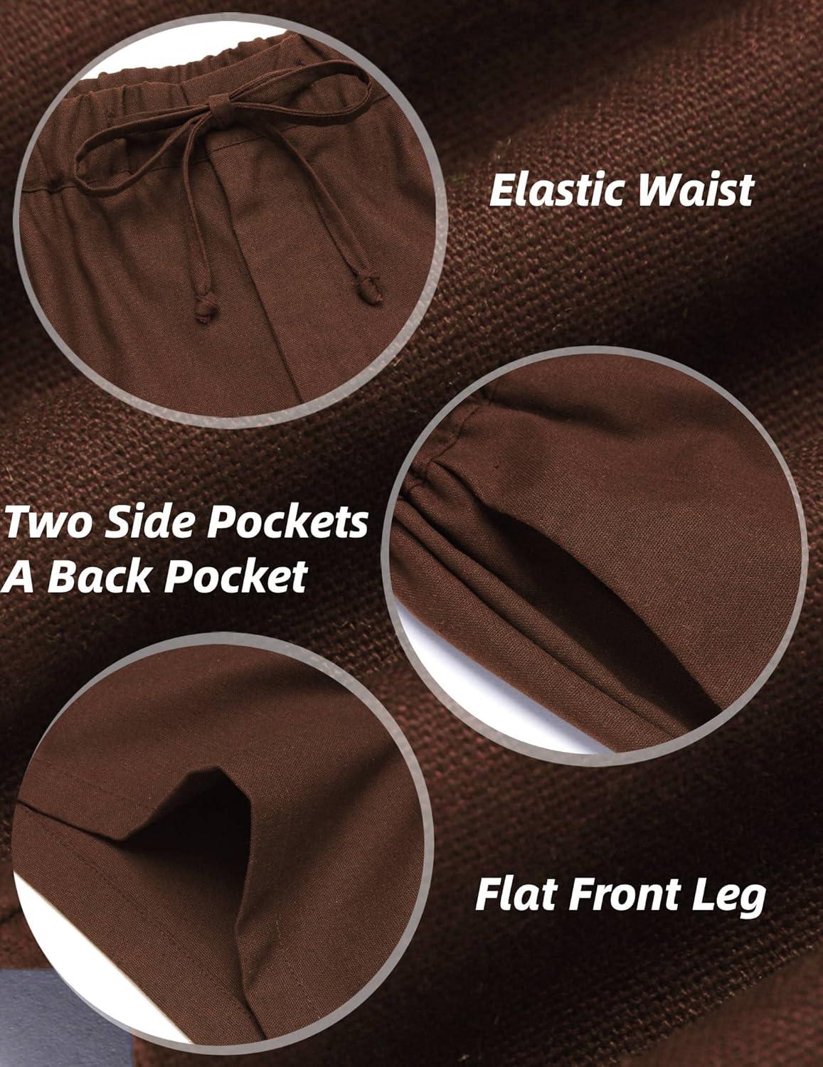 COOFANDY Mens Linen Shorts Elastic Waist Drawstring Casual Summer Beach Shorts(Brown)
