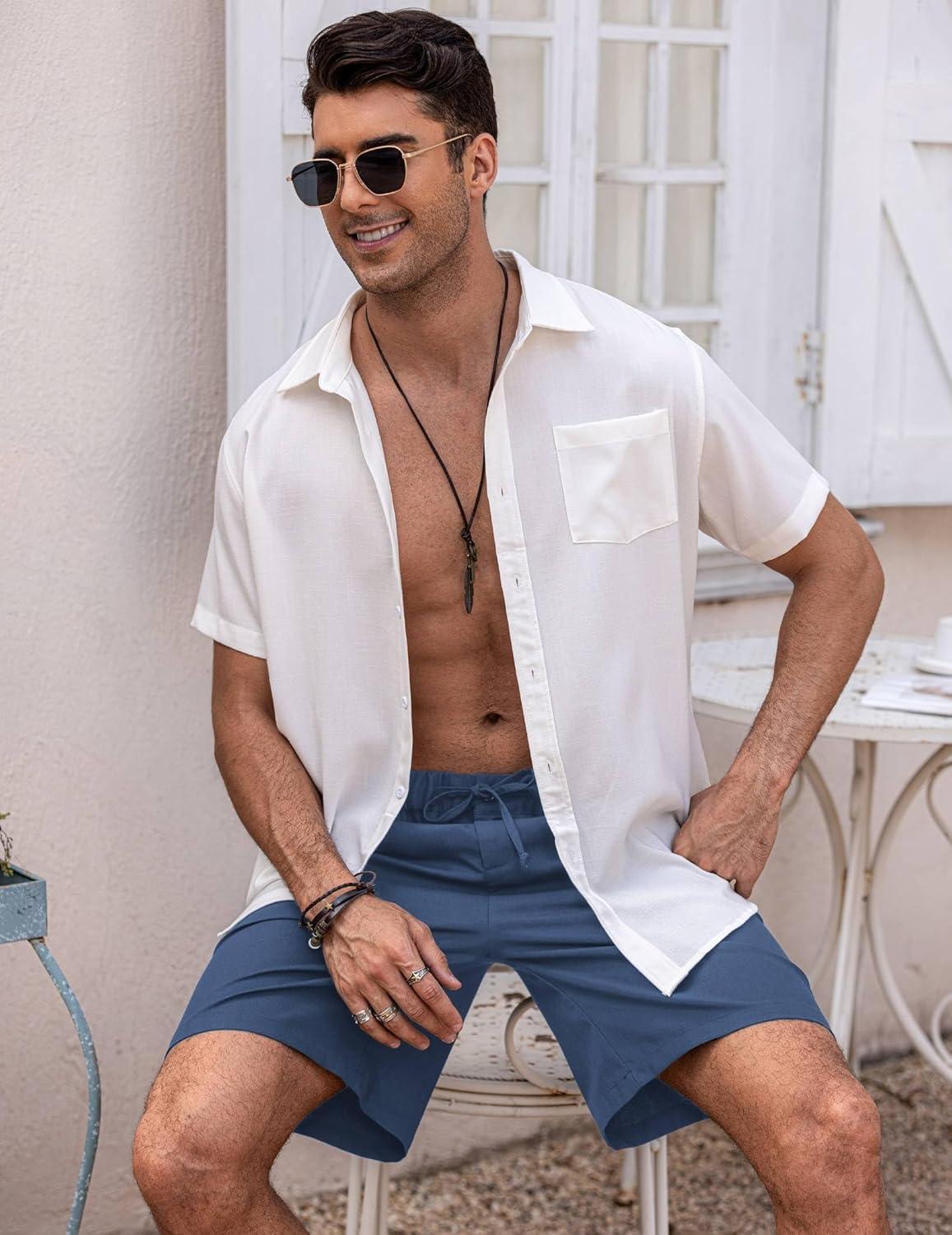 Be the first to review “COOFANDY Mens Linen Shorts Elastic Waist Drawstring Casual Summer Beach Shorts(Denim Blue)”